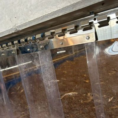 von li nach re: Streifenvorhänge reduzieren Zugluft im Stallinneren. Das Anbringen von Doppelstegplatten wirkt in der kalten Jahreszeit isolierend. Die Klimazone 2 muss in der letzten Mastphase ständig zugänglich sein.