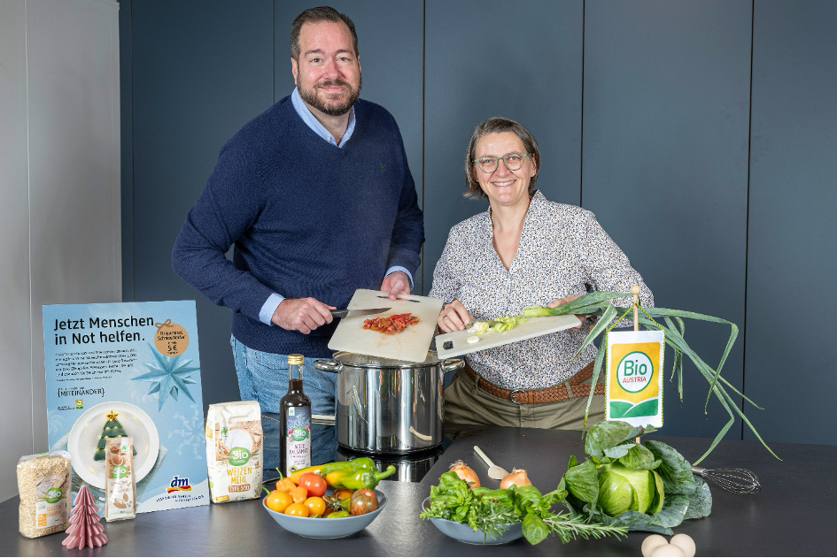 BIO AUSTRIA und dm: 2.000 Bio-Weihnachtsmenüs für Menschen in Not