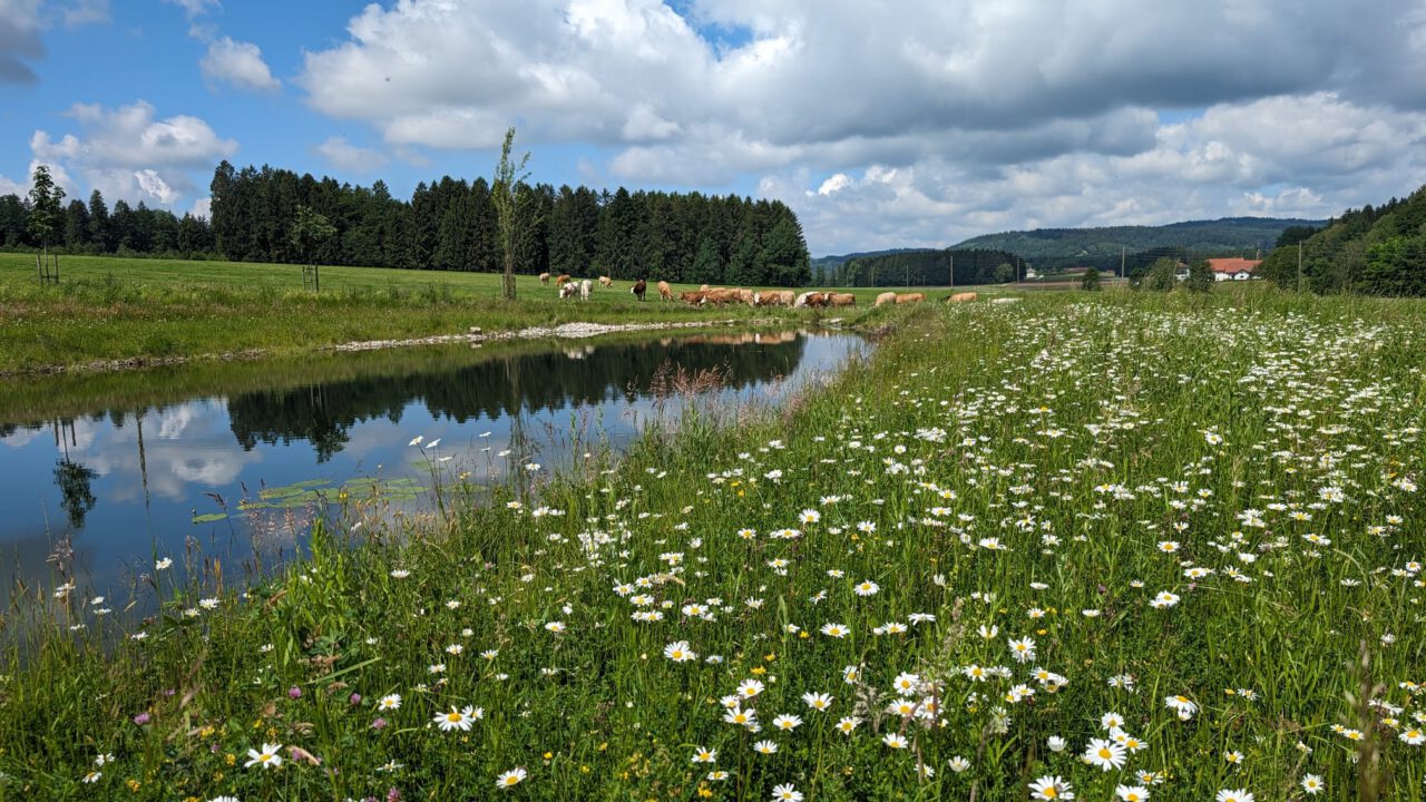 Auf dem Hof von Johann Schauer in Natternbach wird Biodiversität nicht nur gefördert, sondern gelebt. Mit viel Engagement setzt sich der Biobauer dafür ein, verloren gegangene, ökologisch wertvolle Landschaftselemente wieder in den Betrieb zu integrieren. Dabei schafft er mit der Anlage von Wildgehölzhecken, Baumreihen, Wildblumenstreifen, Stillgewässern mit unterschiedlichen Zonen, Solitärbäumen, kleinen Gehölzgruppe sowie Totholzelementen und Steininseln wertvolle Lebensräume für zahlreiche Tier- und Pflanzenarten. Darüber hinaus bewirtschaftet er eine weitläufige Extensivwiese.