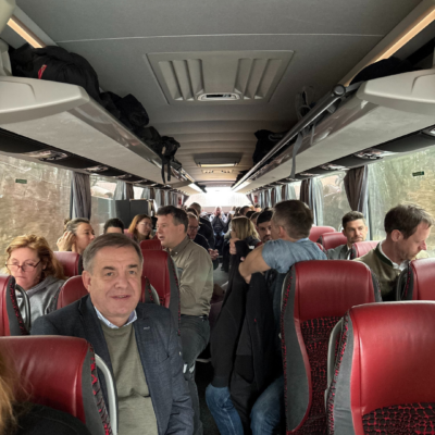 Gestärkt mit einer kleinen Bio-Jause im Bus kam es nicht nur vor Ort zu interessanten Gesprächen- auch die Busfahrt wurde bereits zum Netzwerken genutzt.