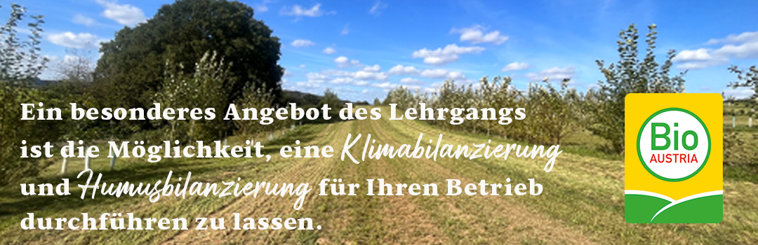- Im Rahmen des Lehrgangs wird eine Klima- und Humusbilanzierung bei den teinehmenden Betrieben durchgeführt.