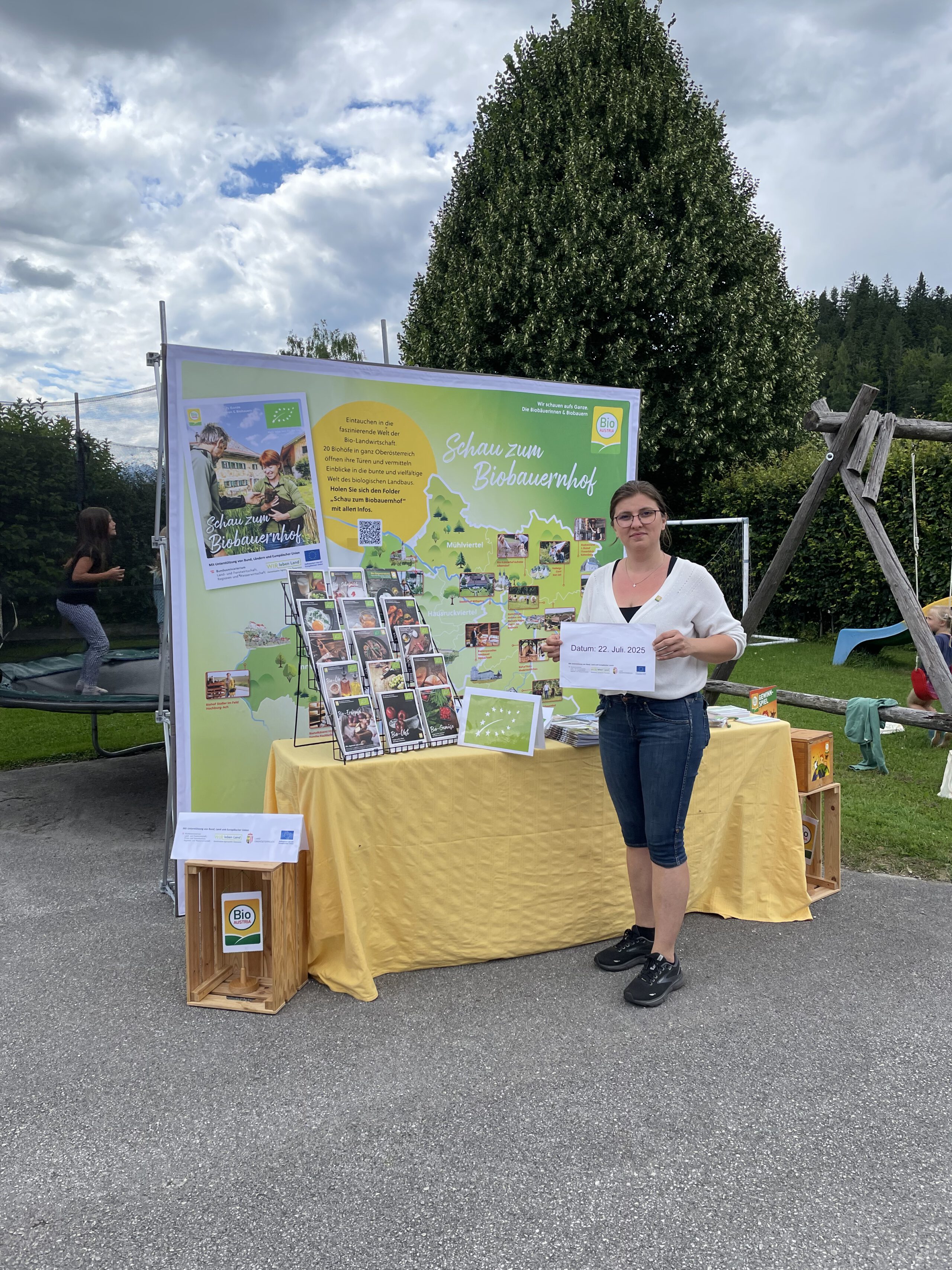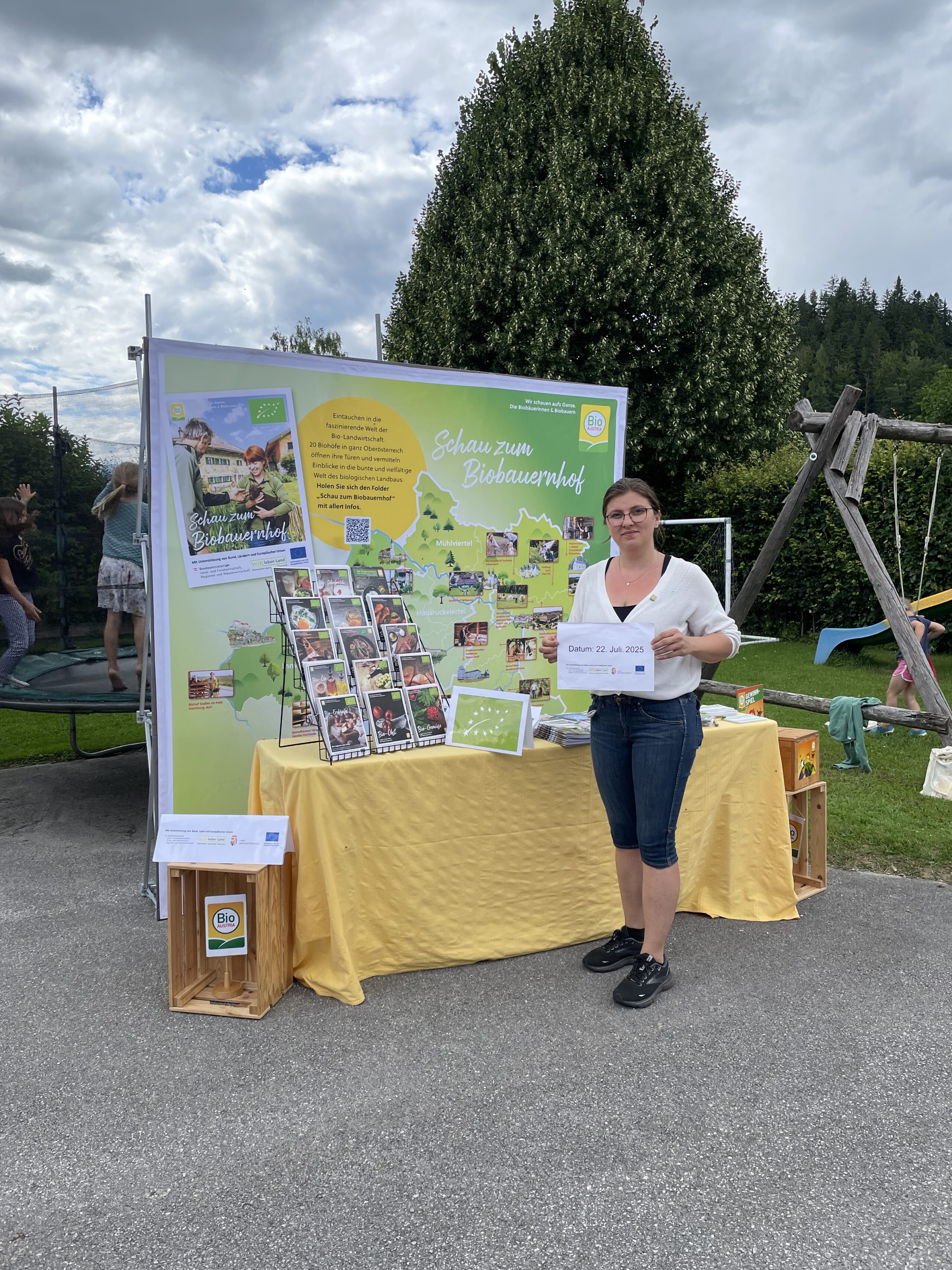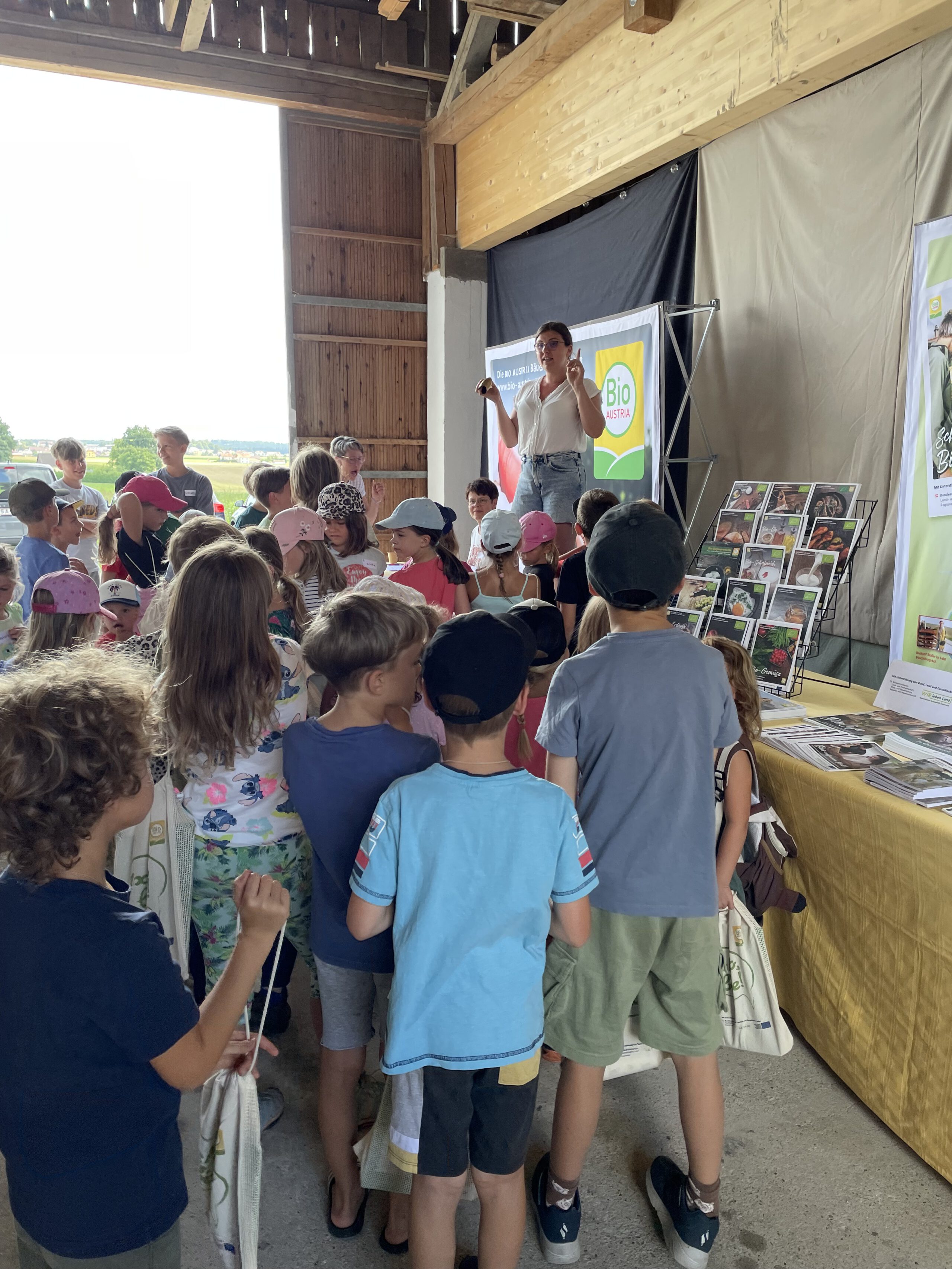 Im Juli 2025 lud BIO AUSTRIA OÖ Kinder im Rahmen der „Mira & Maxi Bio-Bauernhof Erlebnistour“ auf vier Biohöfe quer durch ganz Oberösterreich ein. Rund 200 Kinder folgten der Einladung und tauchten spielerisch in die faszinierende Welt der Bio-Landwirtschaft ein. Das Wetter war zwar durchaus wechselhaft – der heiteren Stimmung tat das aber keinen Abbruch – die Begeisterung bei Groß und Klein war überall spürbar. Die kleinen Gäste konnten auf vielfältige Weise erleben, wie biologische Landwirtschaft funktioniert, Tiere artgerecht gehalten werden und wie Bio-Lebensmittel mit Verantwortung entstehen. Ob beim Füttern von Tieren, bei Entdeckungstouren durch Stall und Wiese, oder beim Zubereiten und Verkosten feiner Bio-Produkte – das Staunen und Lernen stand stets im Mittelpunkt.