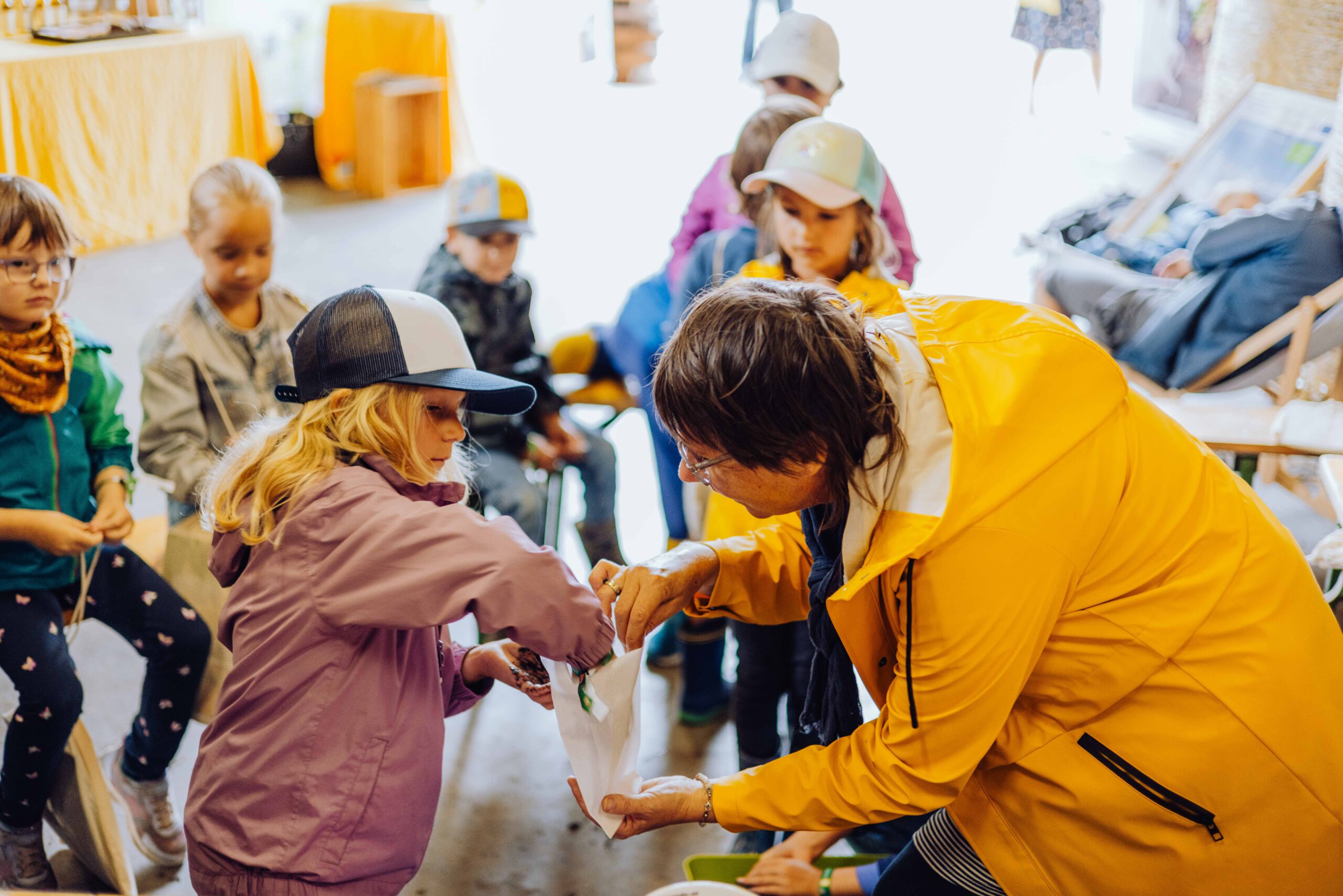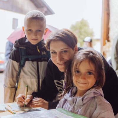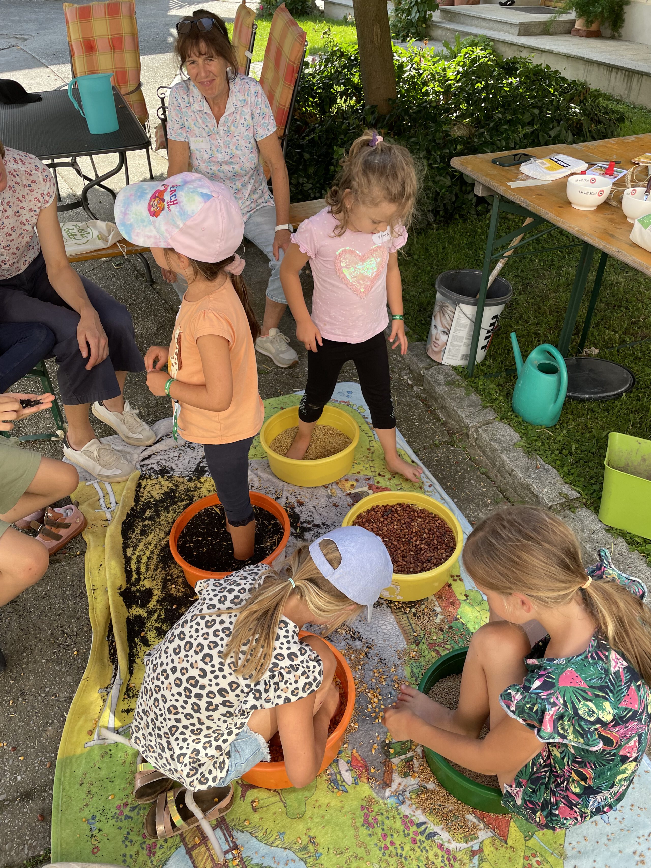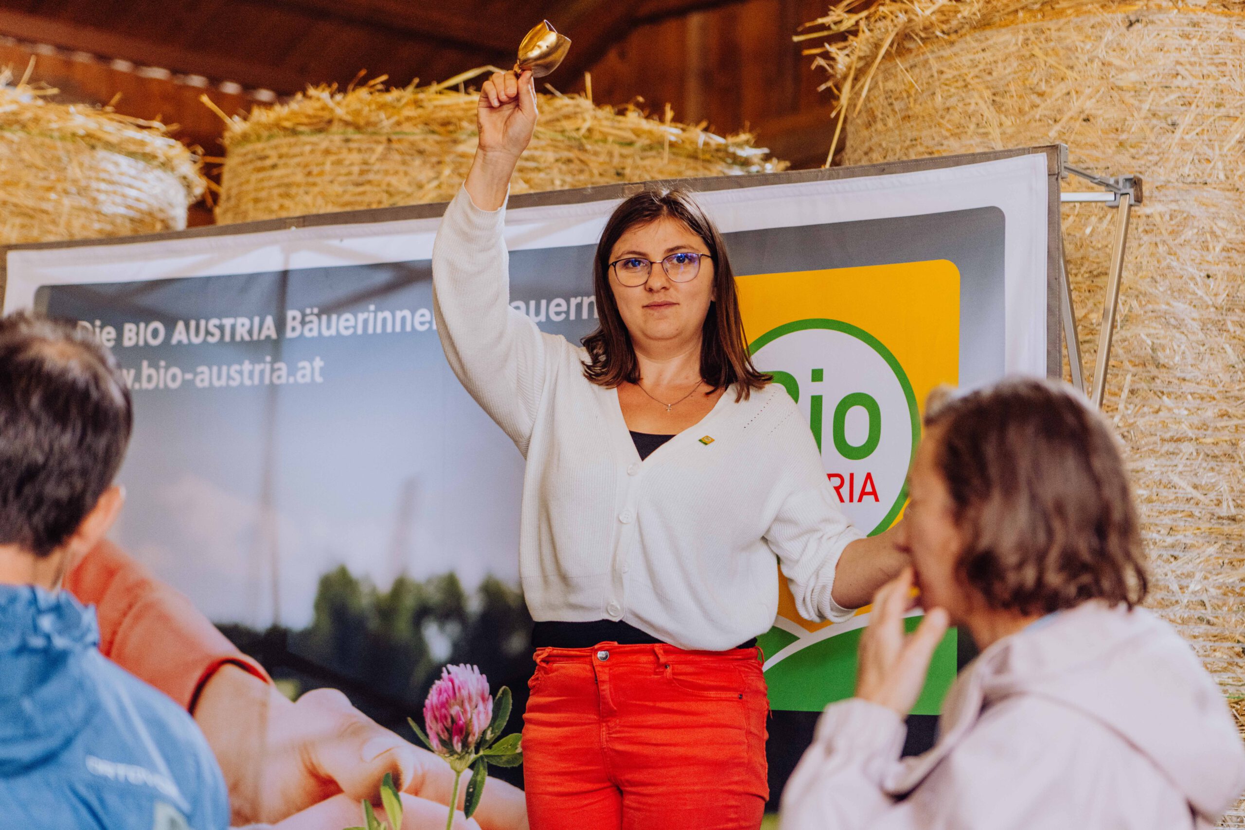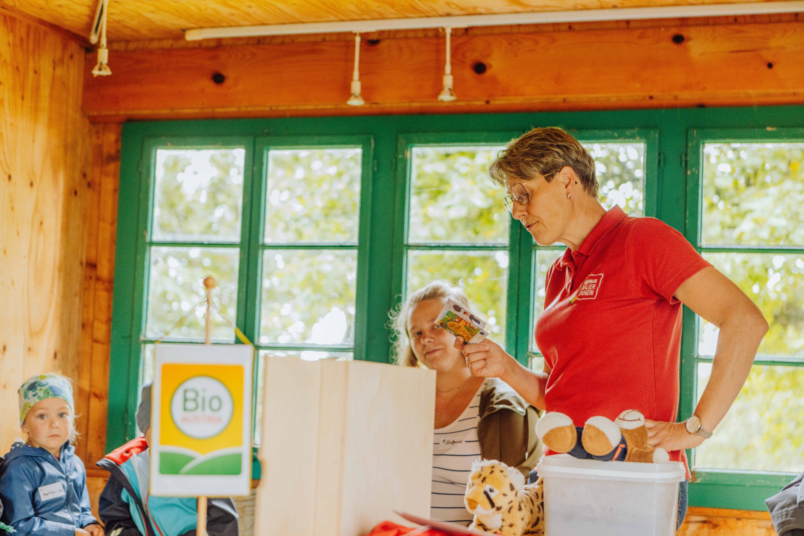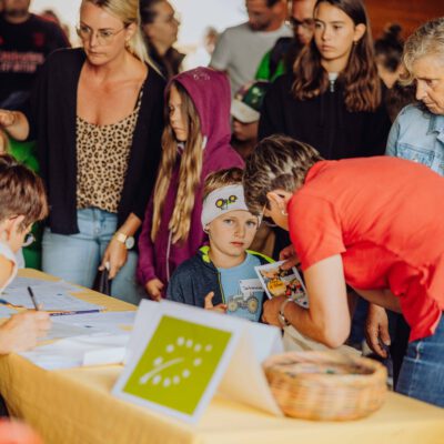 Ein besonderes Highlight waren die vier liebevoll gestalteten Mitmach-Stationen, die auf jedem Biohof für ein abwechslungsreiches und kindgerechtes Erlebnis sorgten. Beim Mira & Maxi-Erzähltheater wurde die Geschichte aus dem Bilderbuch „Mira und Maxi am Bio-Bauernhof“ im „Holzfernseher“ lebendig – begleitet von einer Bio-Seminarbäuerin und interaktiv erzählt. Bei einer weiteren Station drehte sich alles um das Thema Biodiversität. Mit tasten in „Greifsäcken“ und dem Formen von Samenbällen oder auch liebevoll „Pralinen für die Bienen“ genannt, wurde das Thema anschaulich vermittelt.