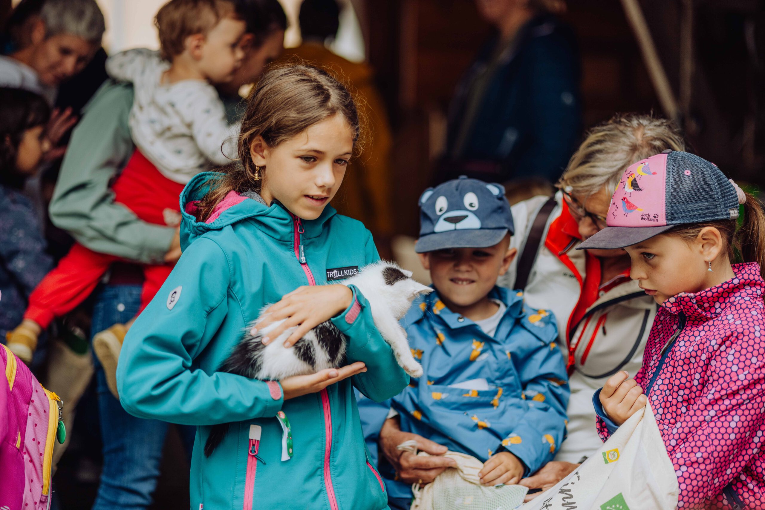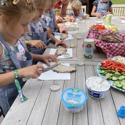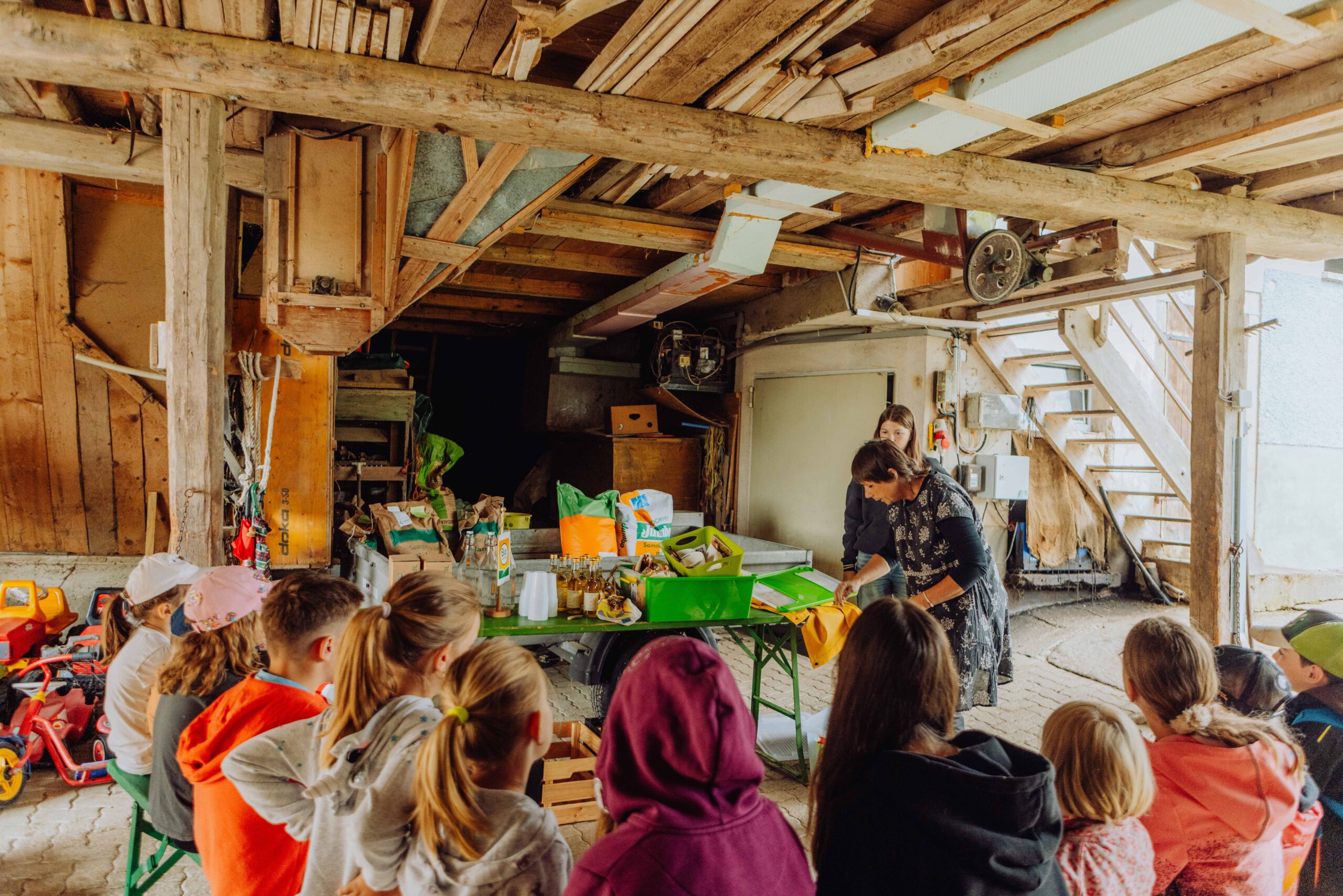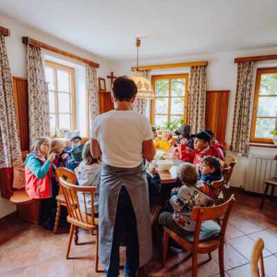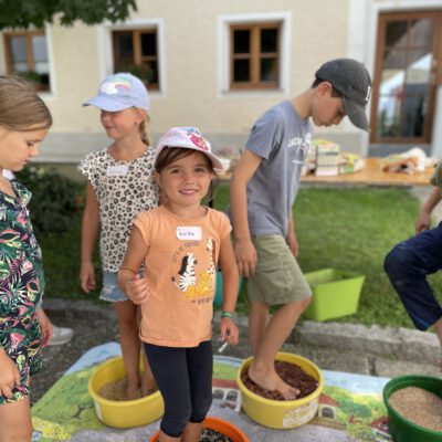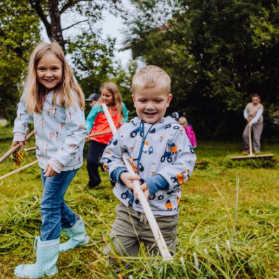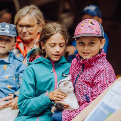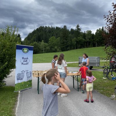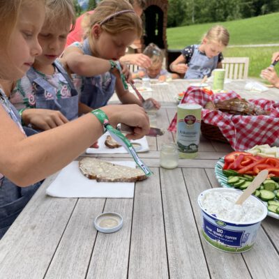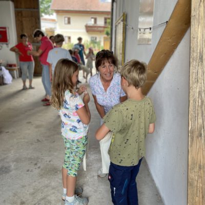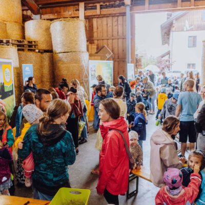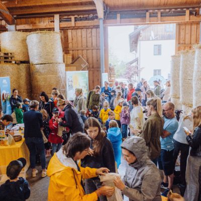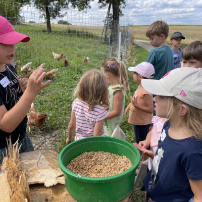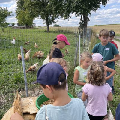 Am Weslhof konnten Kinder Mutterkühe und ihre Kälber aus nächster Nähe kennenlernen und beim Füttern mit dem selbst zusammengerächten frischen Gras erfahren, was verantwortungsvoller Umgang mit Tieren in der Bio-Landwirtschaft bedeutet. Die vielen Hühner luden zum Füttern ein – mit etwas Glück konnten die Kleinen auf einen Blick auf die frisch geschlüpften Küken erhaschen.