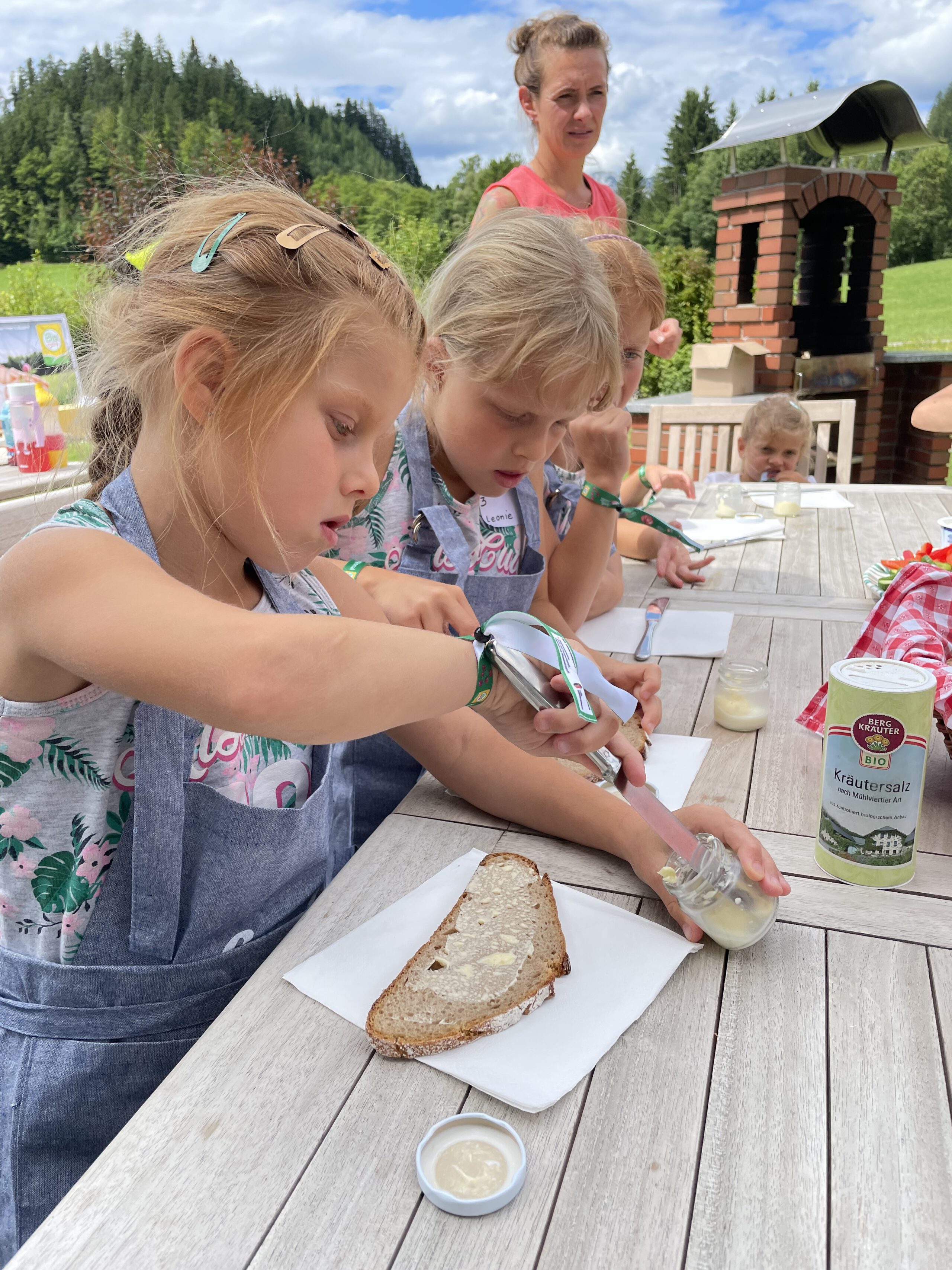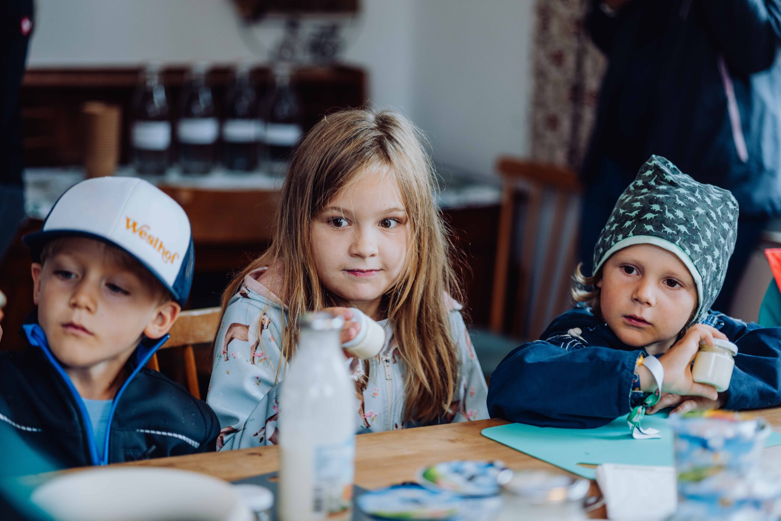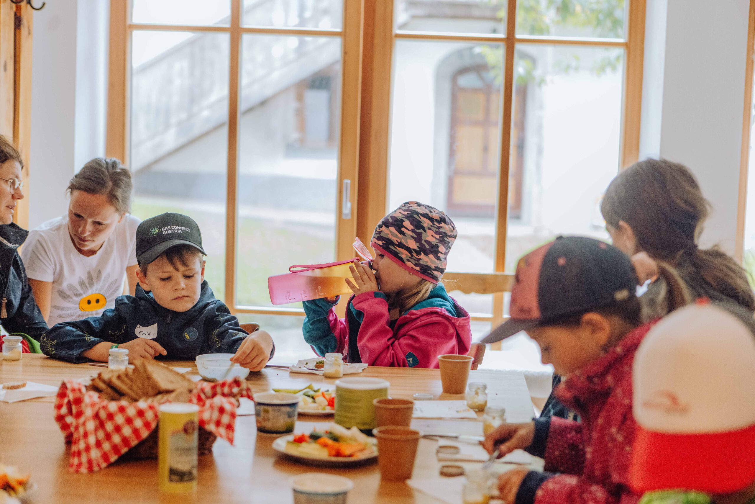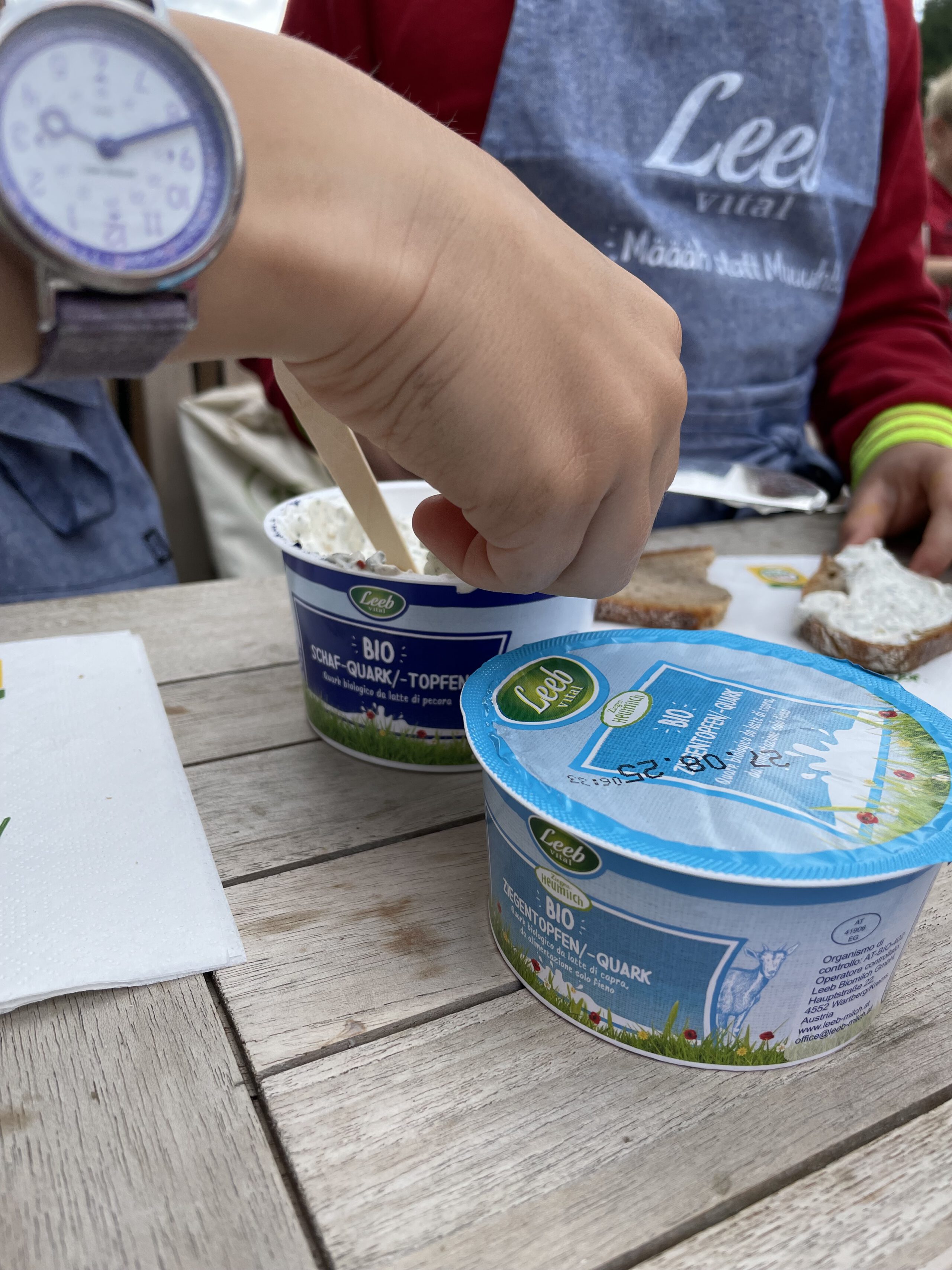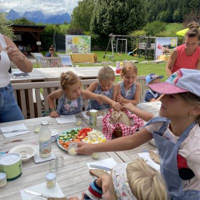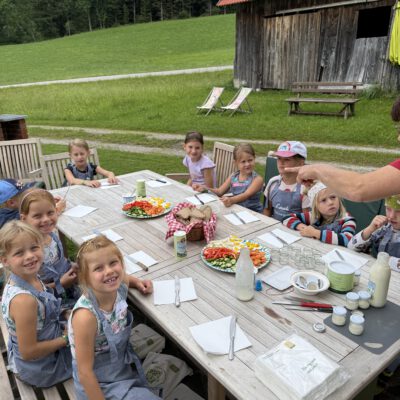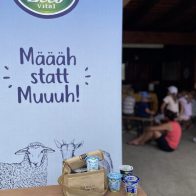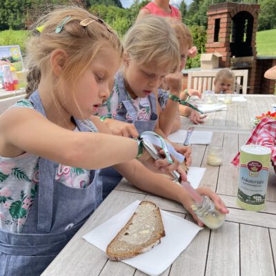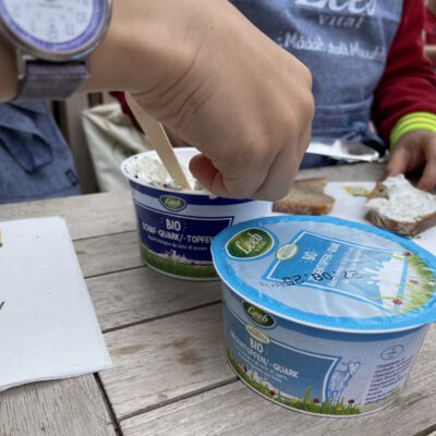 Auf dem gesamten Biohof konnten die Kinder bei der Station „Bio erleben“ auf Spurensuche gehen: Bio-Tiere auf der Weide und im Stall kennen lernen und Bio-Landwirtschaft auf Feld und Wiese hautnah erleben stand hier am Programm – dabei wurden sie von den Bio-Bäuerinnen und Bio-Bauern vor Ort begleitet und so die Vielfalt der biologischen Landwirtschaft in der Praxis vermittelt. Und natürlich durfte auch der Genuss nicht zu kurz kommen – bei der Station „Bio schmecken“ durften die Kinder selbst Butter schütteln und lernten so spielerisch, wie aus wenigen natürlichen Zutaten ein hochwertiges Lebensmittel entsteht – Wow Effekt garantiert. Bei der anschließenden Bio-Jause lernen schon die Kleinsten was alles hinter der Produktion von Bio-Lebensmittel steckt.