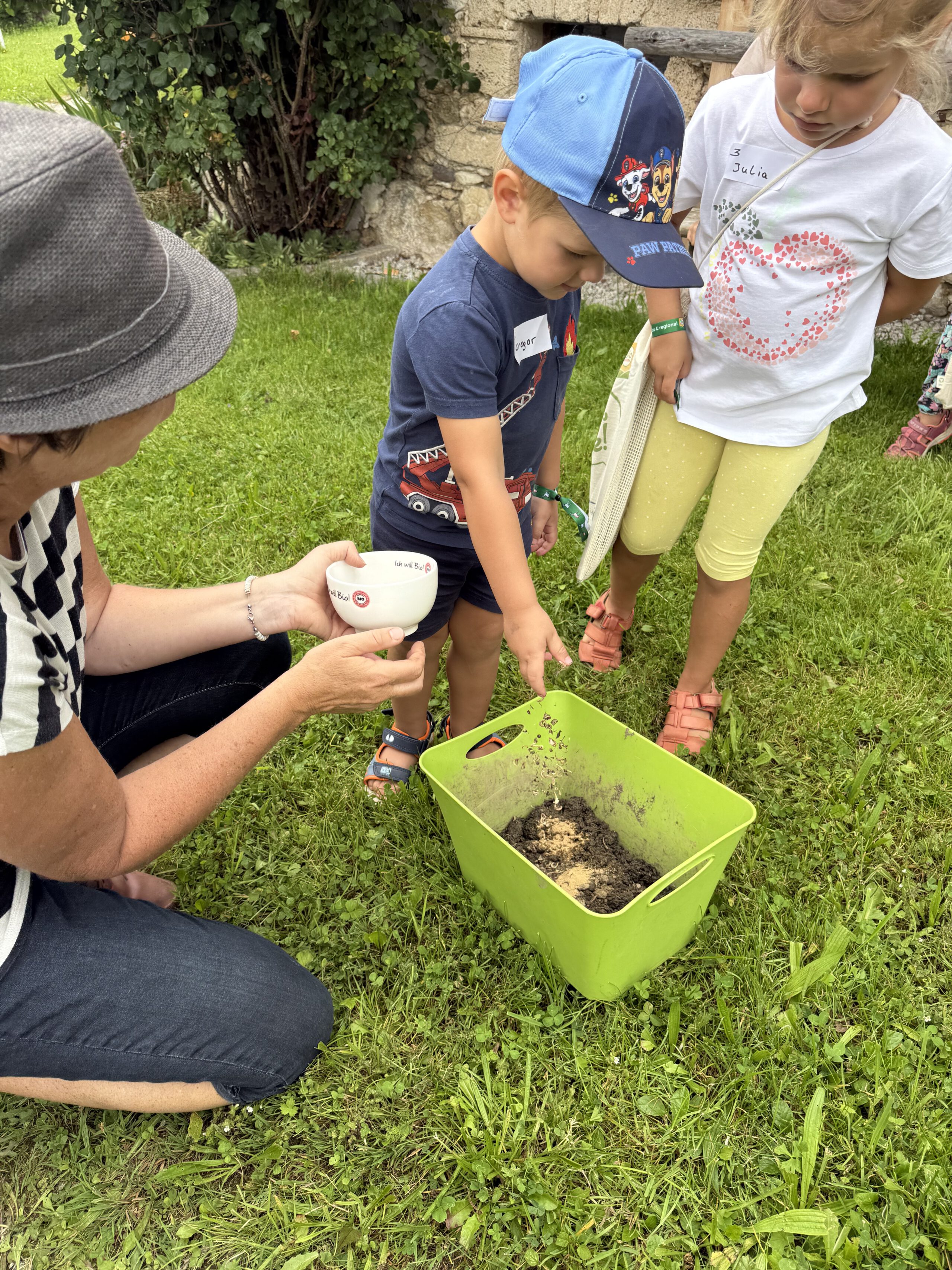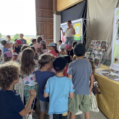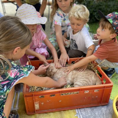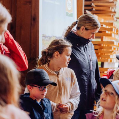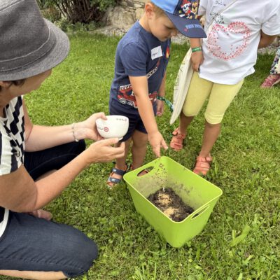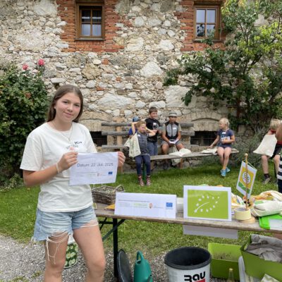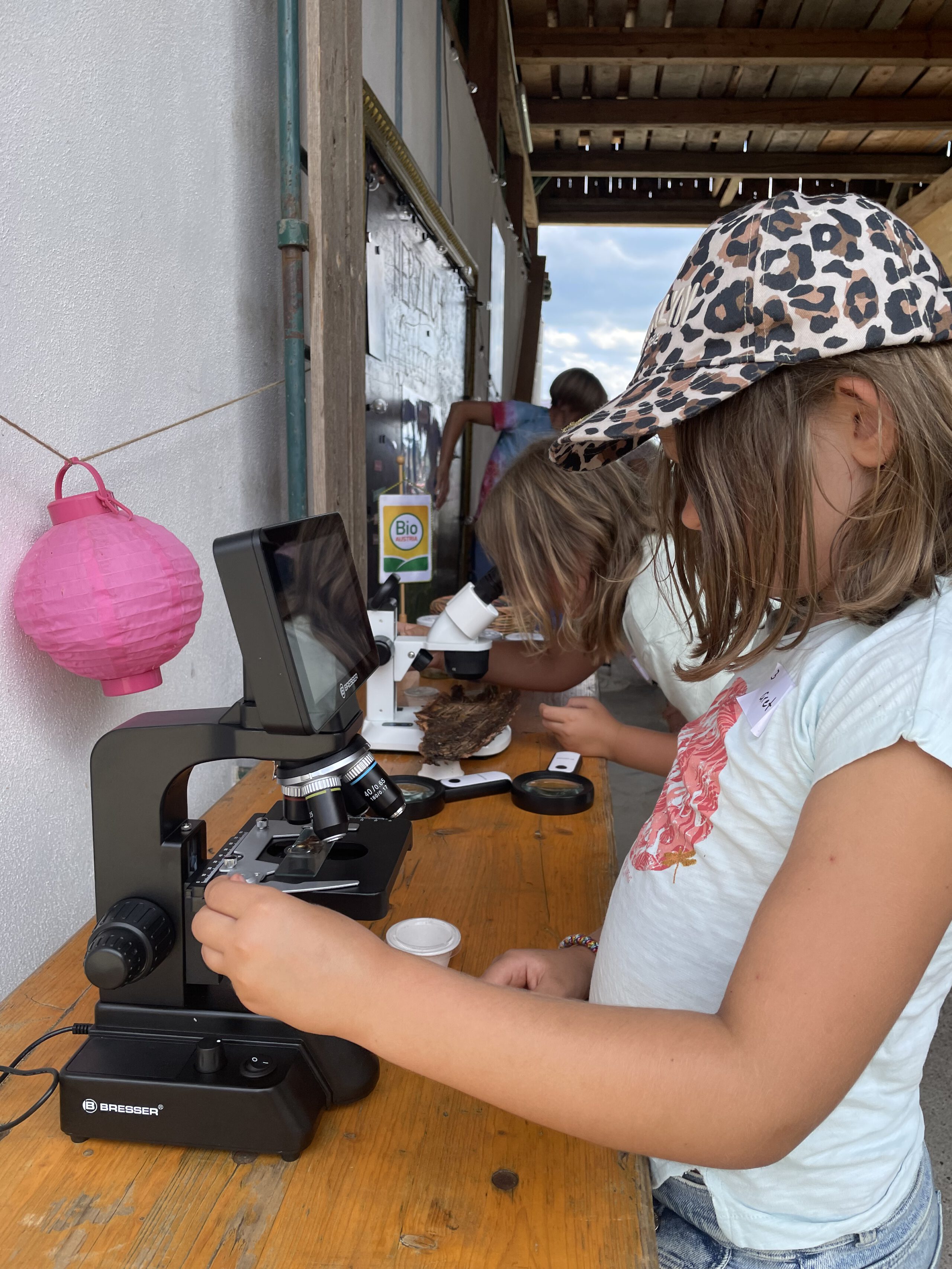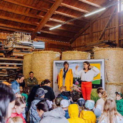 Beim Besuch am Biobauernhofs Staller im Feld lernten die Kinder alles über Legehennen und ihre Bruderhähne – ein besonders spannendes Thema rund um Tierwohl und nachhaltige Kreisläufe. Bei der Mikroskop-Station wurde die Welt der Insekten entdeckt und bei der Natur-Schatzsuche mit Netz auf der Bio-Wiese wurde die Bedeutung von Biodiversität kindgerecht und anschaulich vermittelt.
