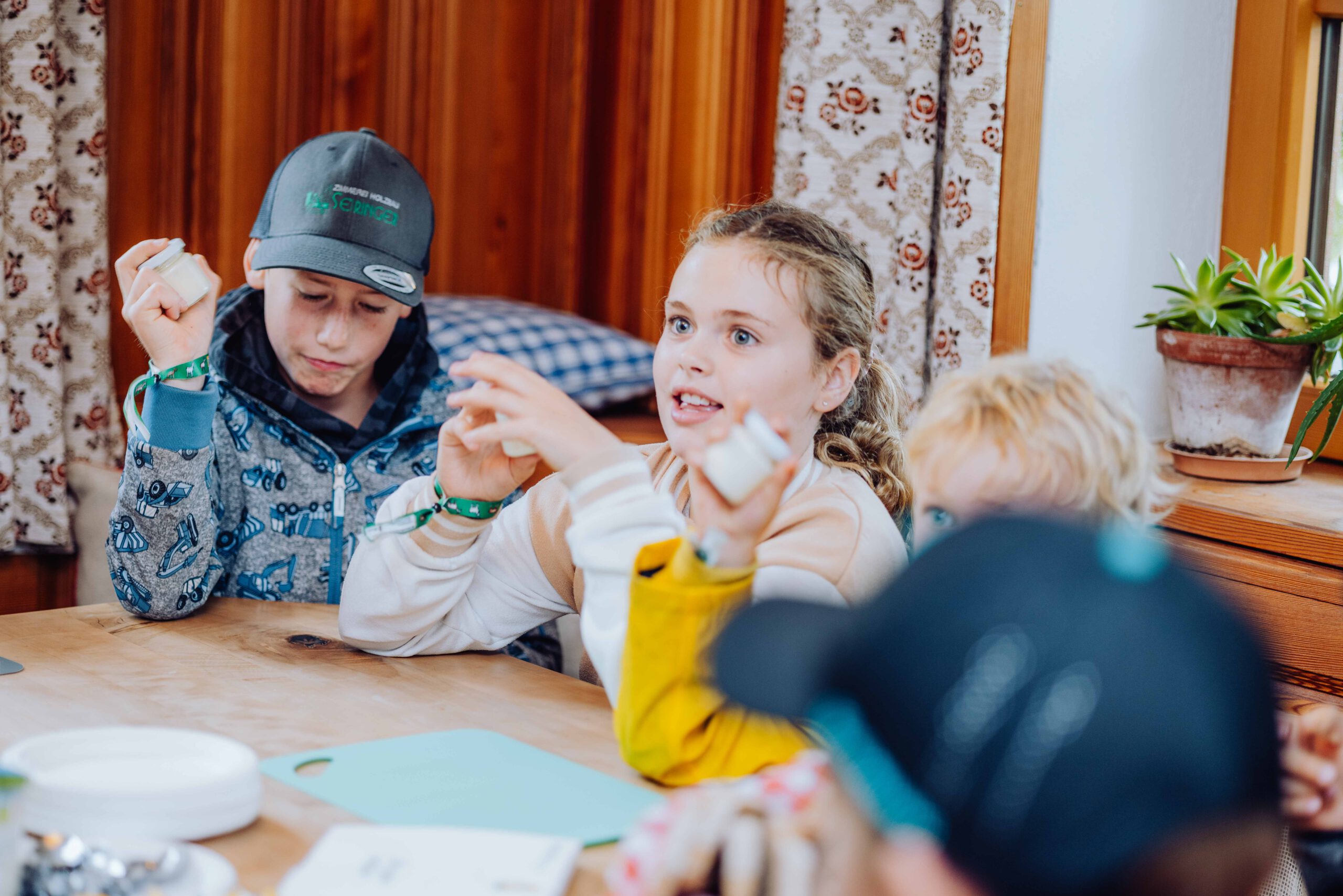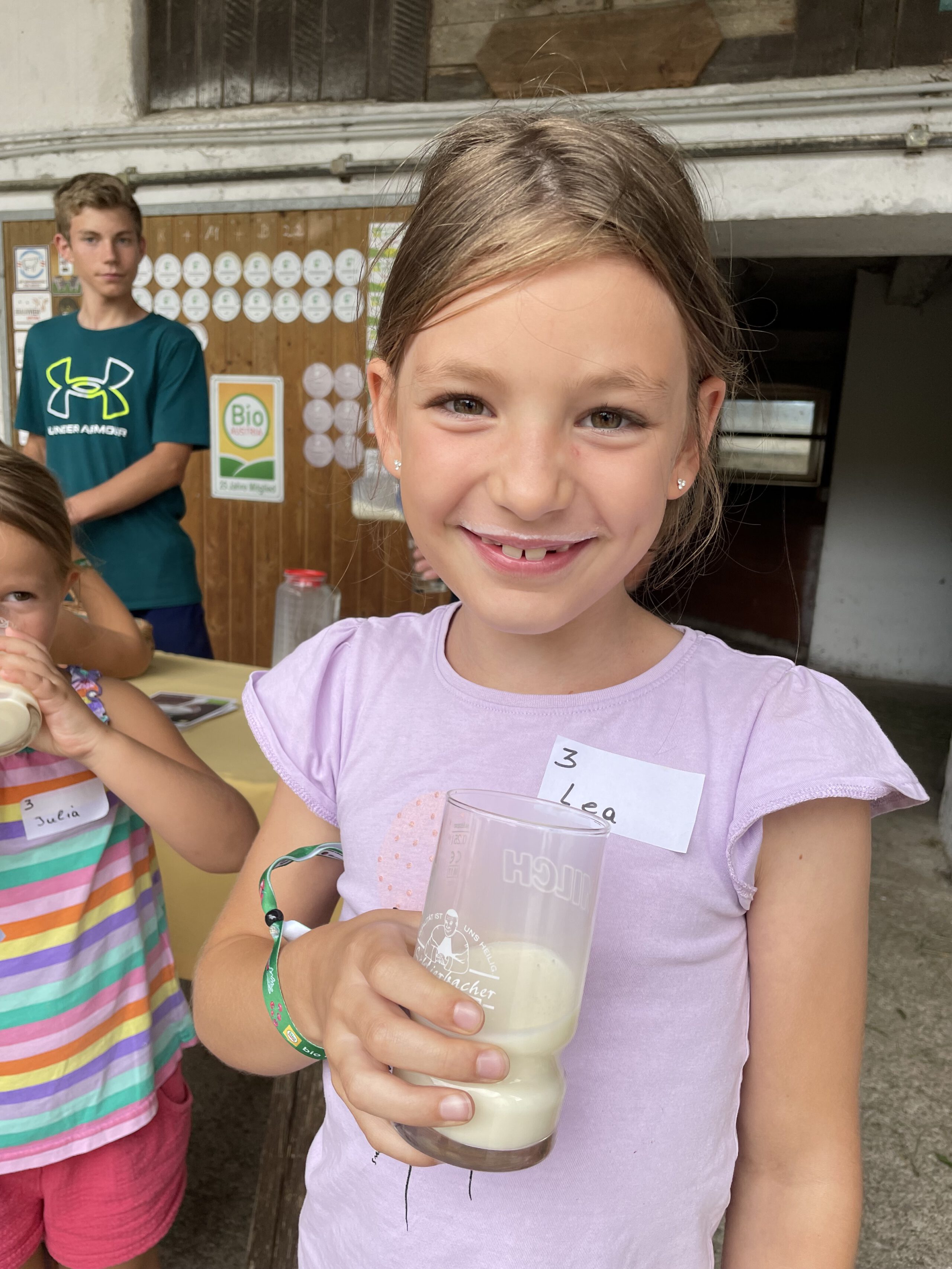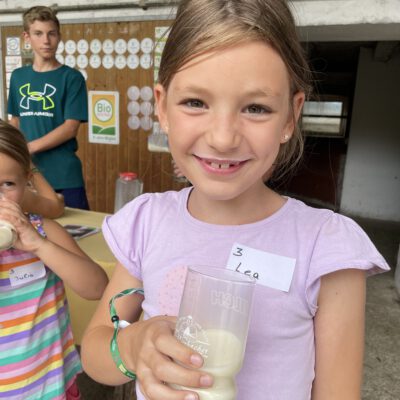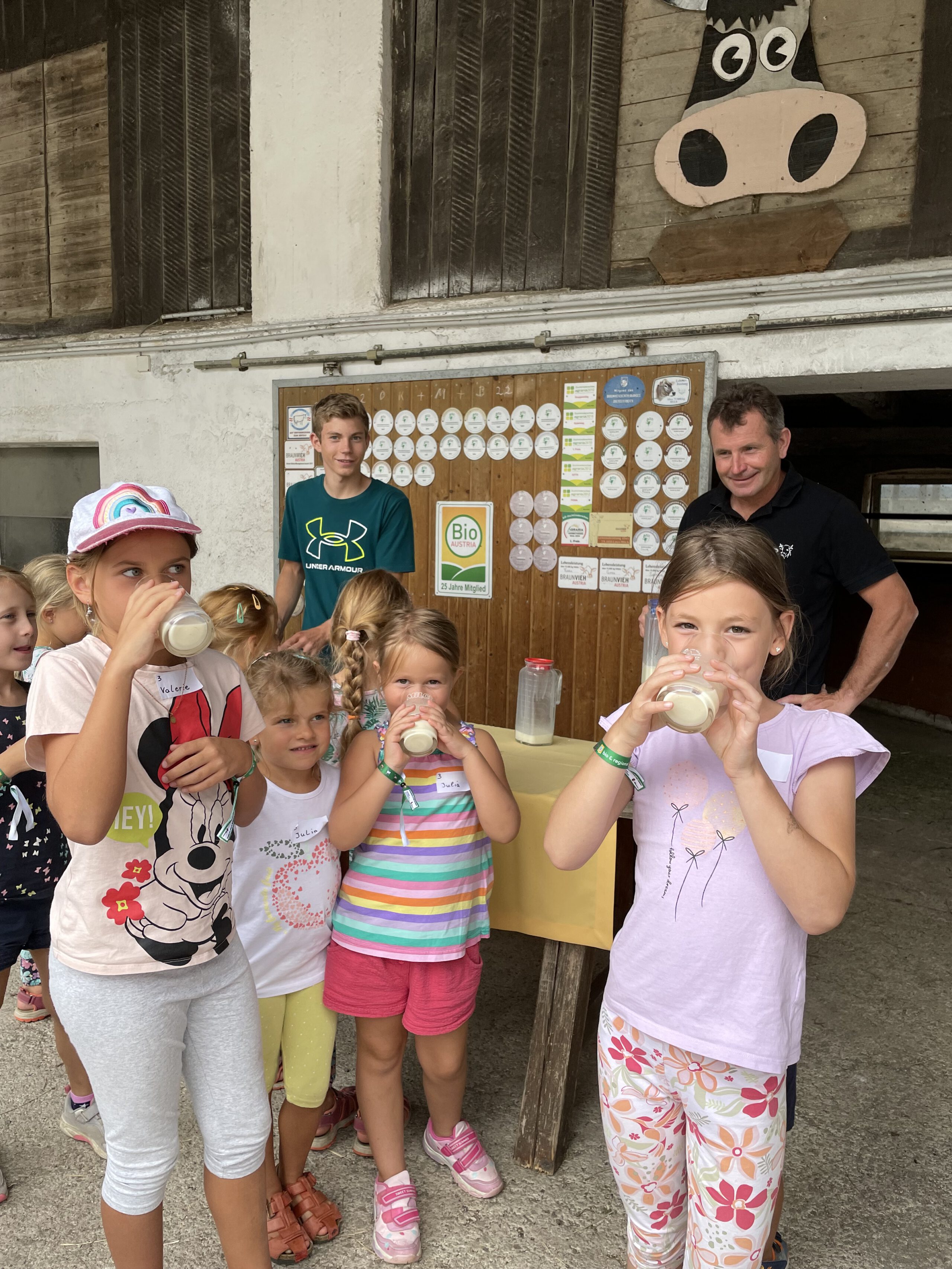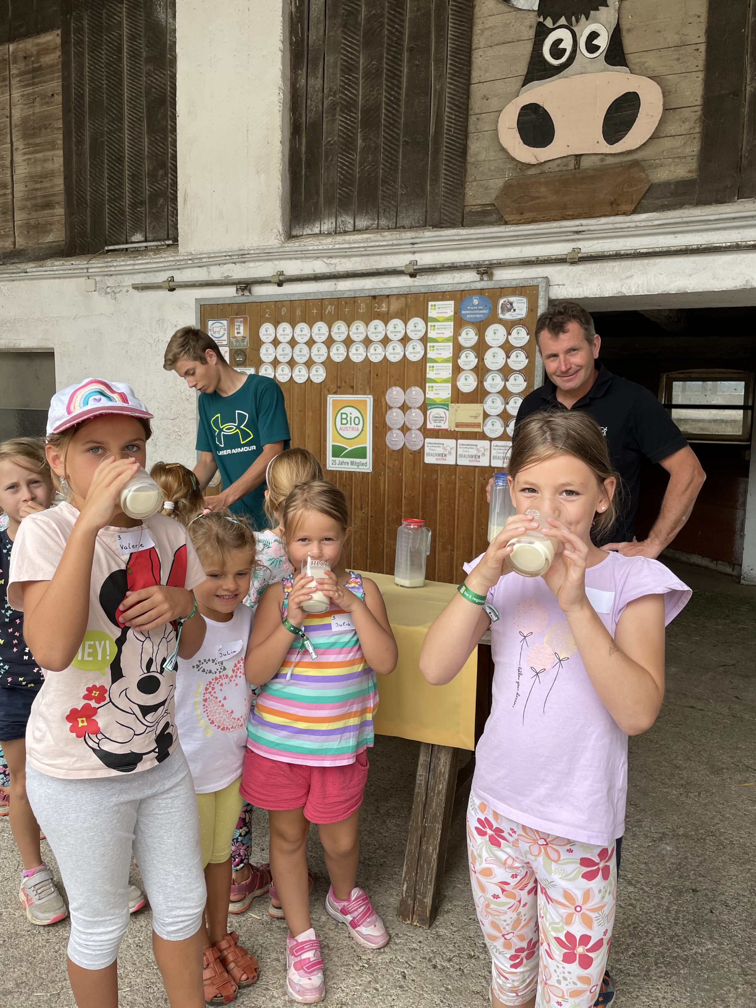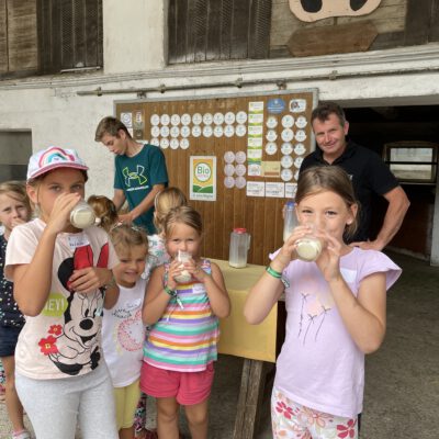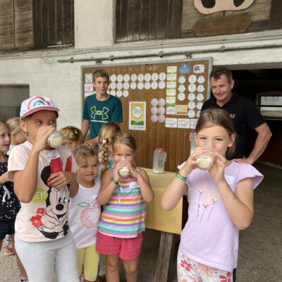 Am Biobauernhof Dansbach der Familie Stockreiter durften die Kinder hautnah erleben, wie aus der frischen Bio-Milch – Kostprobe inklusive – der Kühe köstlicher Bio-Käse wird. Besonders beliebt waren die tierischen Begegnungen mit den kleinen Kälbern „Maxi“ und „Bernhard“ – die sich sichtlich über viele Streicheleinheiten freuten. Die Entdeckungstour durch den Bio-Stall zeigte, was die biologische Tierhaltung besonders macht.
