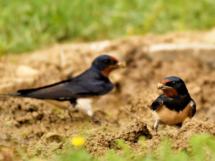 Unsere „Siedlungsschwalben“ Rauch-, Mehl und Felsenschwalbe bauen ihre Nester kunstvoll aus feuchter lehmiger Erde oder Lehm, die sie an Wasserlacken oder offenen Gewässerufern sammeln. Erhalten Sie deshalb unversiegelte Wege und Plätze, an denen Lacken entstehen und „gießen“ Sie schon vorhandene lehmige Wasserlacken bei trockenem Wetter. Ansonsten können Sie zur Unterstützung eigene Schwalbenlacken aus Lehm anlegen und feucht halten (Vegetation dort kurzhalten). Auf versiegelten Flächen dient ein flaches Gefäß mit Lehm dem gleichen Zweck.