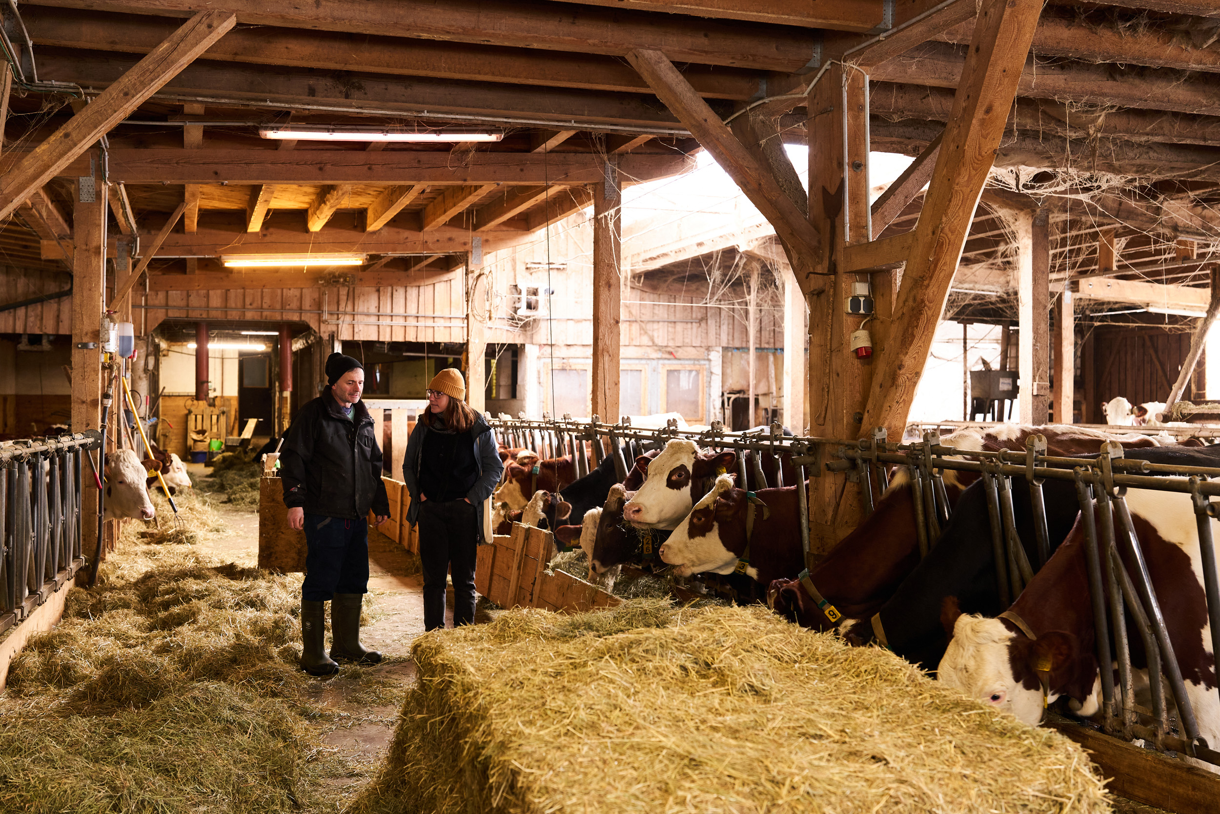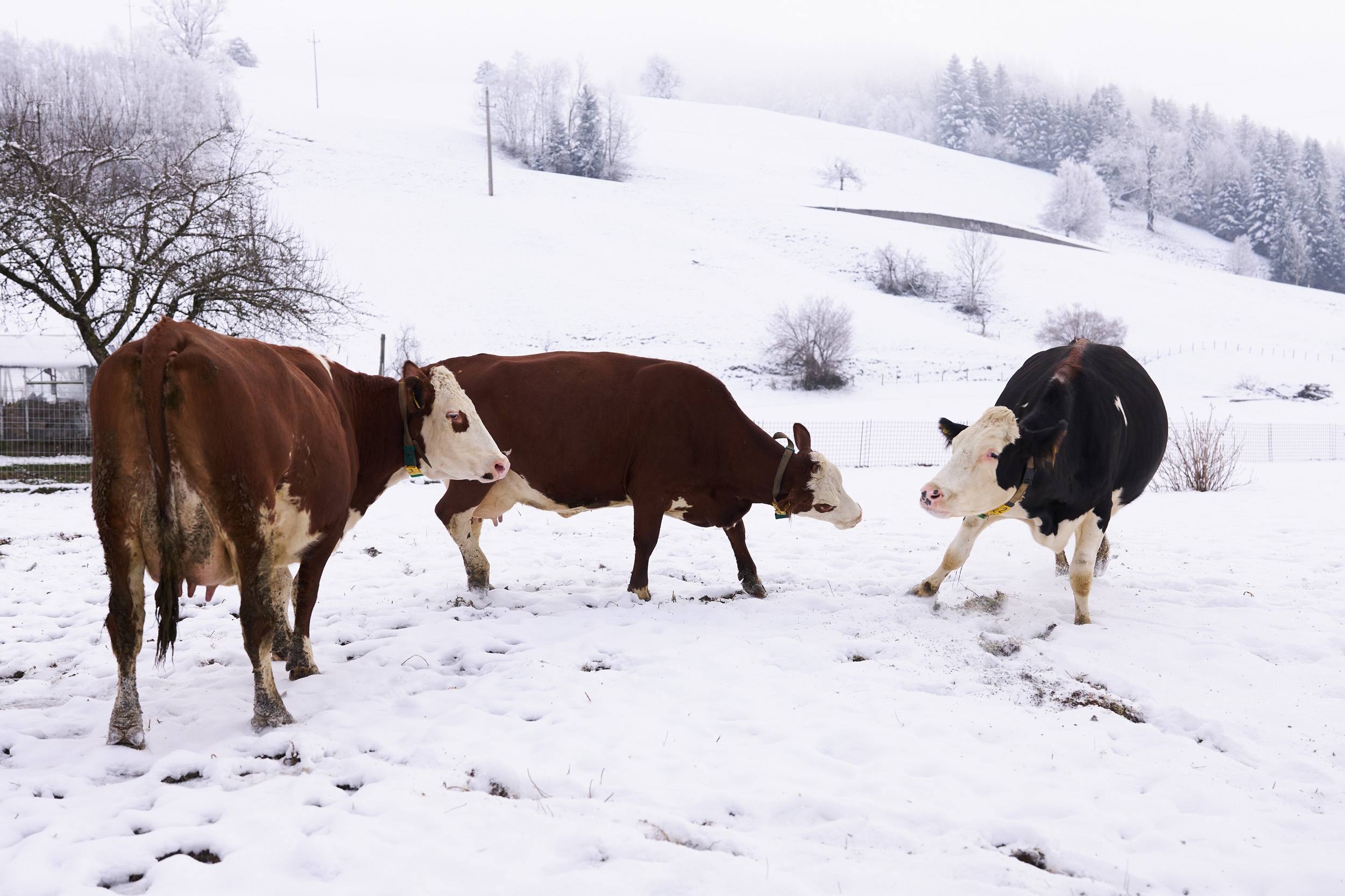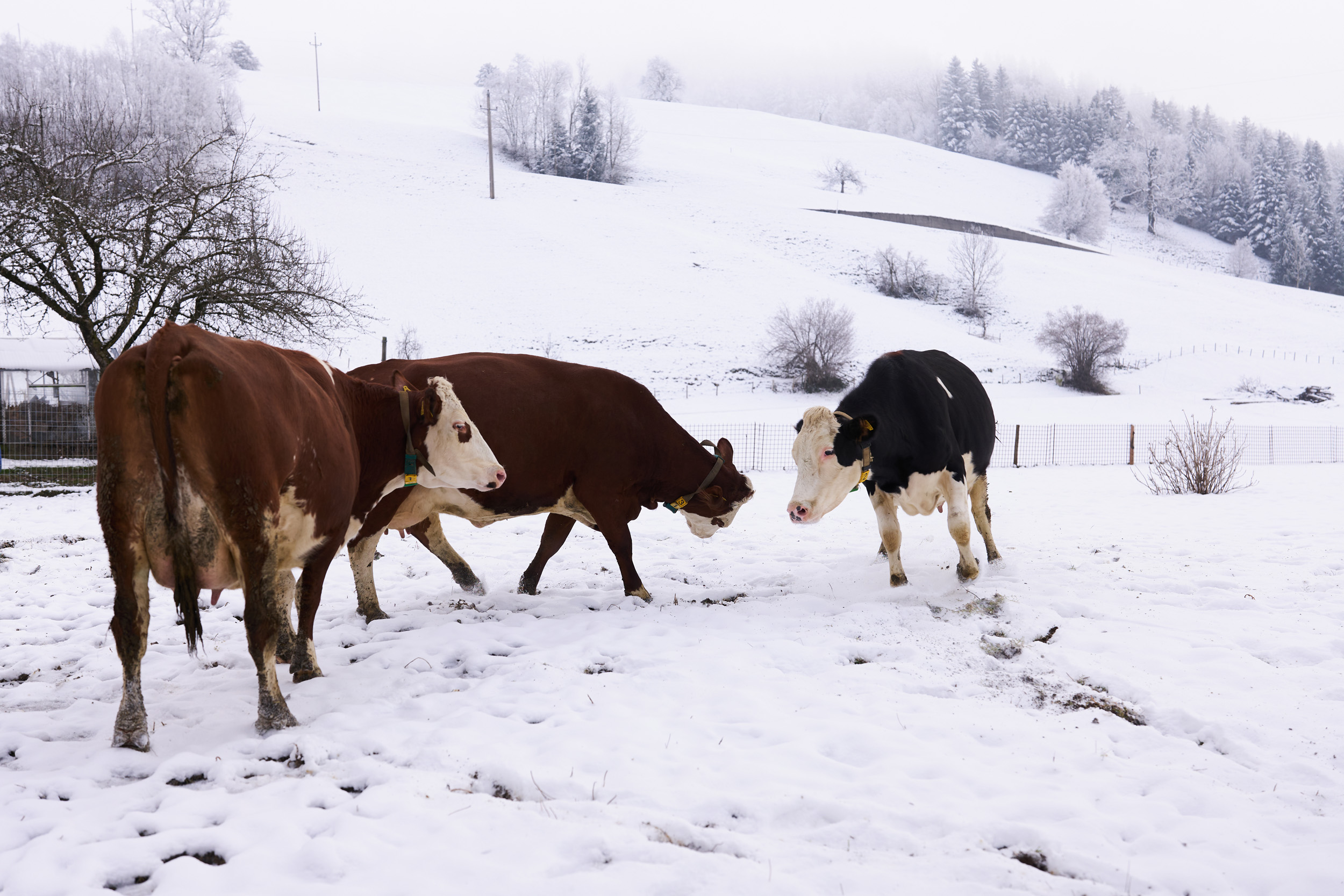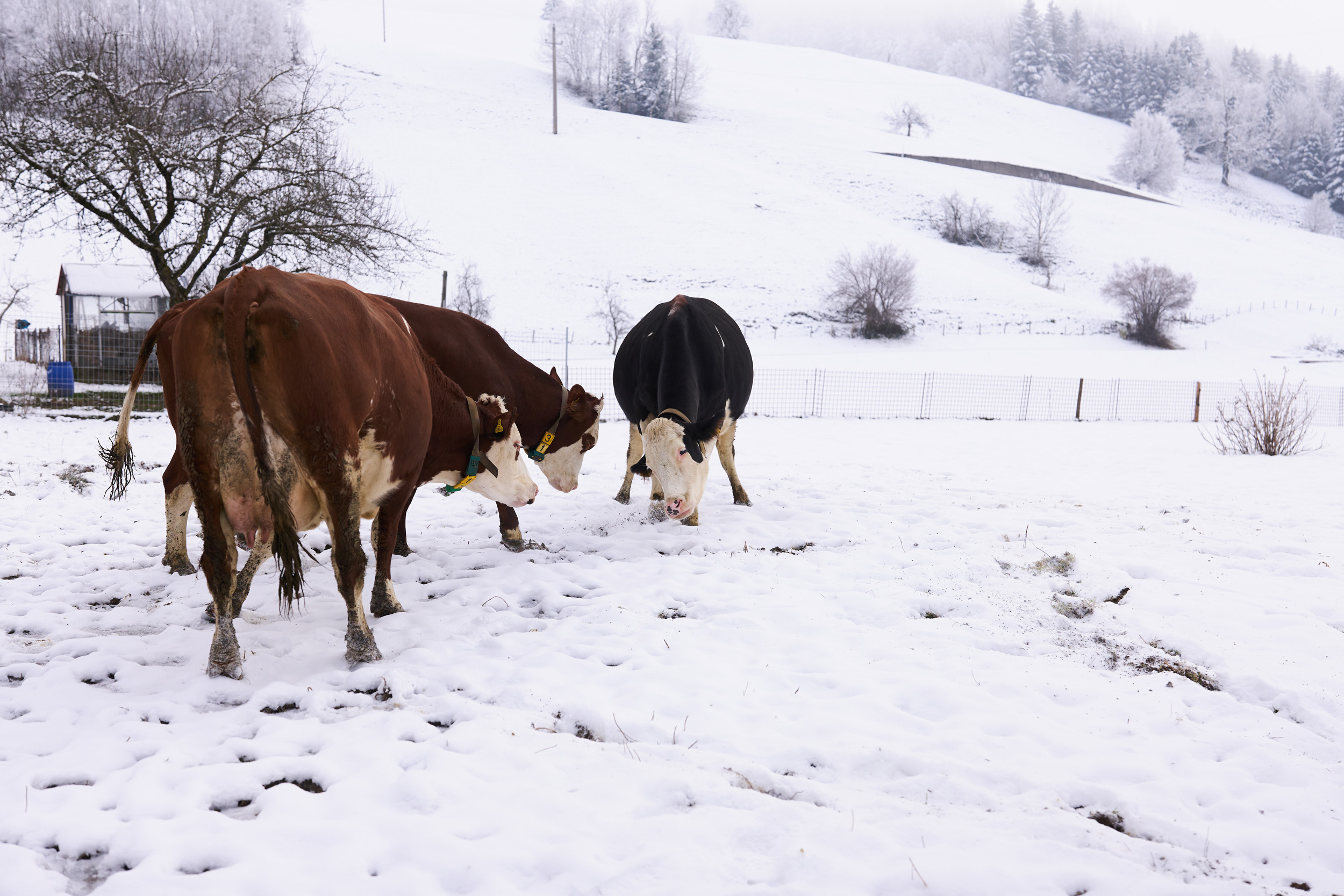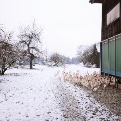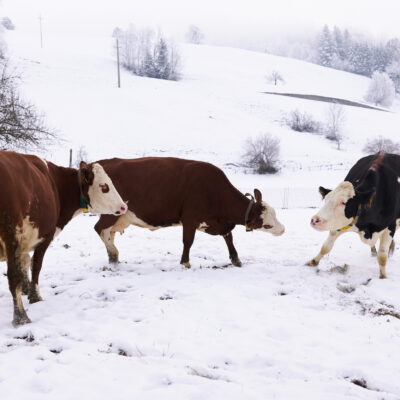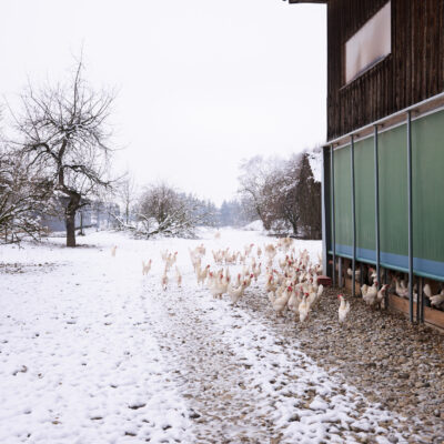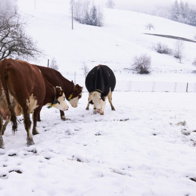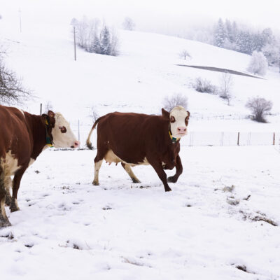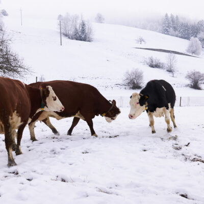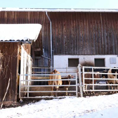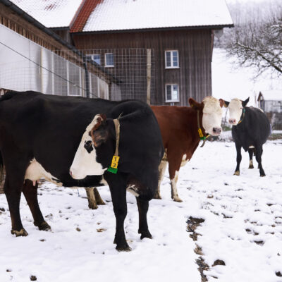 Landwirtschaft kennt kein „gutes“ oder „schlechtes“ Wetter – zu tun ist immer etwas. Wir haben Anfang 2024 geschaut, was sich denn auf unseren Bio-Betrieben im Winter tut. Kühe zum Beispiel mögen es lieber viel kälter als wir Menschen … je nach Rasse liegt die Wohlfühltemperatur im Bereich von -7 und + 17 Grad Celsius. Wenn es noch kälter wird, sollte das auch kein Problem werden – es muss aber auf eine ausreichende Energieversorgung geachtet werden. Das Gemüse dagegen freut sich über einen Folientunnel. Die Hühner chillen in der Einstreu im Stall und freuen sich, dass sie als Bio-Hühner viel Bewegungsfreiheit und Wühlmöglichkeiten haben …