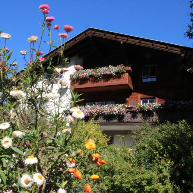 Rund ums Bauernhaus gibt es einen Naschgarten mit Beeren, Apfel-, Birnen- und Zwetschkenbäumen – so kann den ganzen Sommer und Herbst über Süßes und Gesundes von Sträuchern und Pflanzen geerntet und genossen werden.