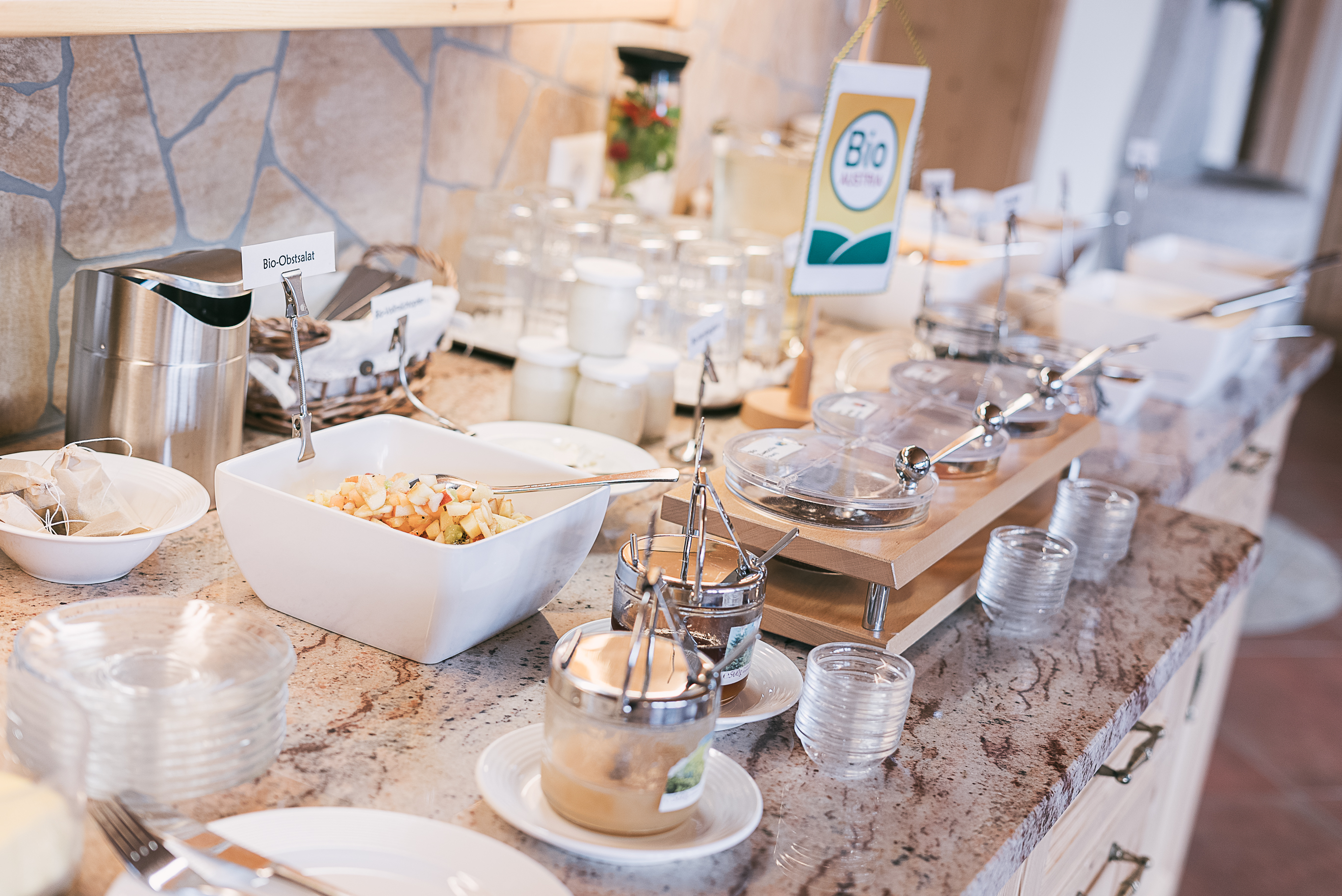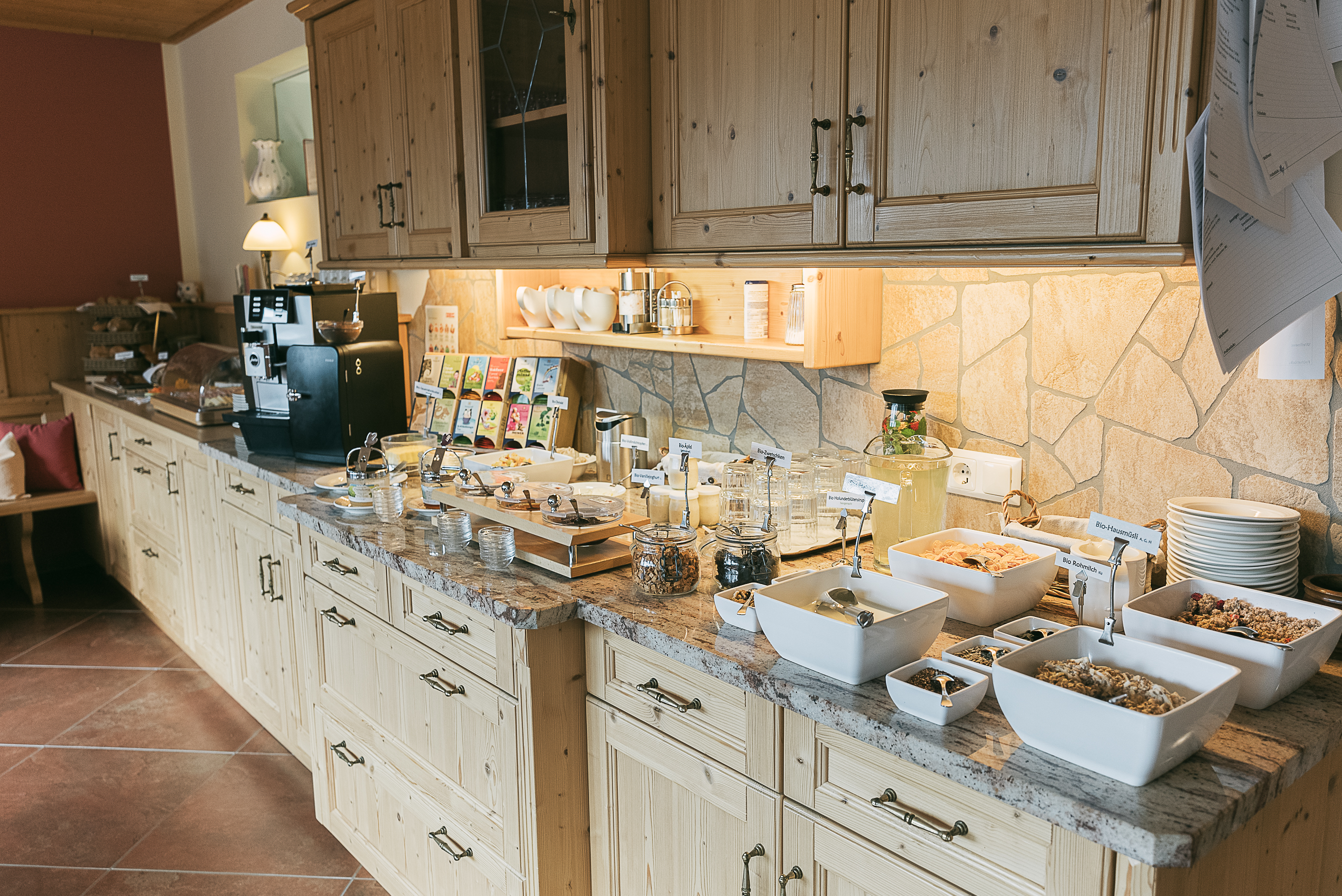 Auf Wunsch wird Ihnen ein köstliches, regionales Bio-Frühstück mit 100% biologischen Zutaten geboten – perfekt, um in den Tag zu starten. Die Gäste dürfen sich täglich auf neue Köstlichkeiten freuen und erfahren dabei immer mehr über die Herkunft und Herstellung der Produkte.