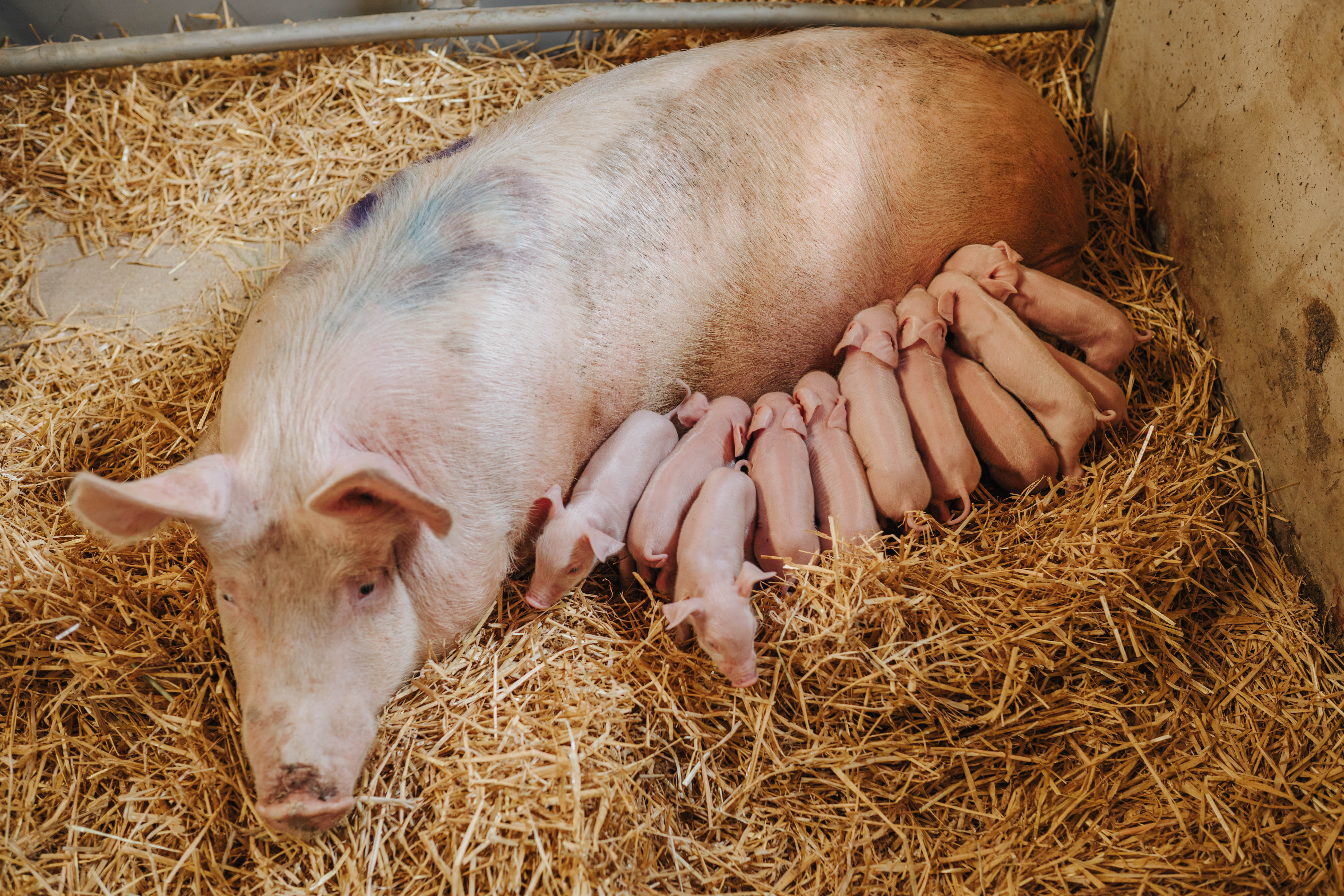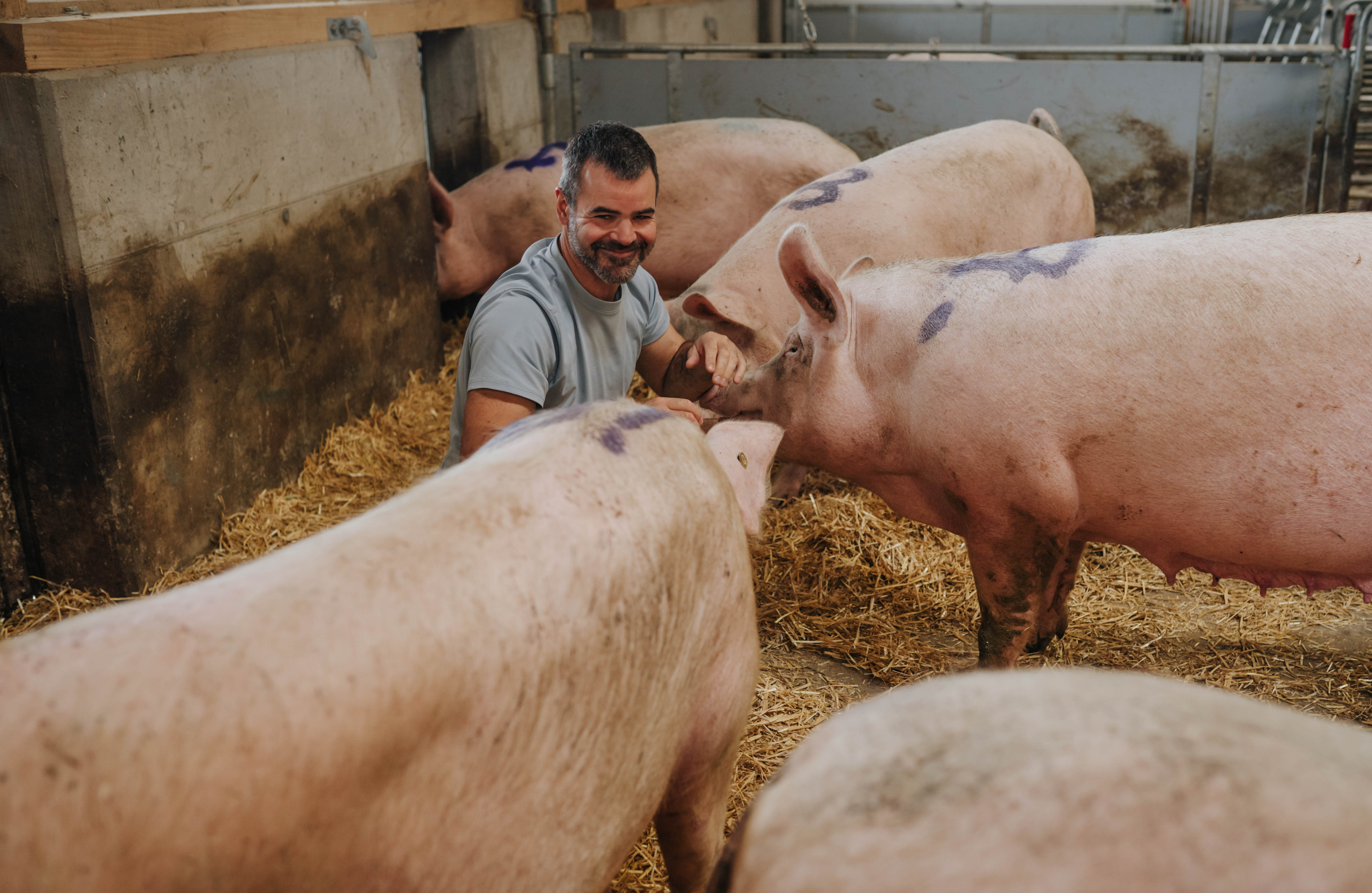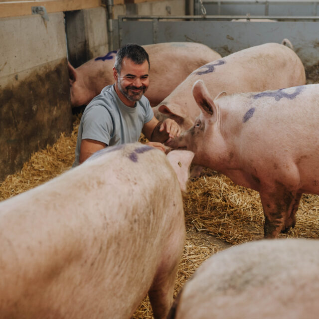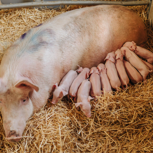 Einige Ferkel dürfen das ganze Leben auf unserem Bauernhof verbringen und können dort die gemütliche Atmosphäre im Stall mit genügend Stroh genießen. Die stetige Möglichkeit ins Freie zu gehen, um dort alle vier Jahreszeiten zu erleben, hält unsere Schweine gesund und robust. Das ausgewählte und selbst angebaute Getreide sowie das frische Gras von unserem Obstgarten, welches als Futter für unsere Schweine dient, versprechen ein langsames und gesundes Wachsen. Nach einigen Monaten, wenn unsere Schweine die Schlachtreife erreicht haben, findet die respektvolle und stressfreie Fleischgewinnung unserer Tiere im gleichen Ort statt.
