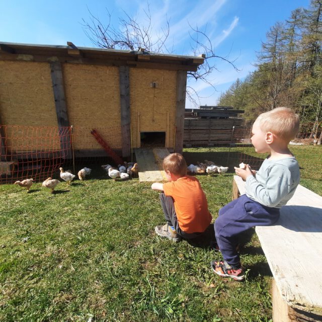 Wir, Sandra und Andreas, bewirtschaften unseren Biohof seit 02/2019 im Nebenerwerb und schätzen die Mitarbeit von Hermi und Pepi. Auch unsere Kinder dürfen das Leben am Bauernhof genießen und den Kreislauf der Landwirtschaft hautnah erleben.