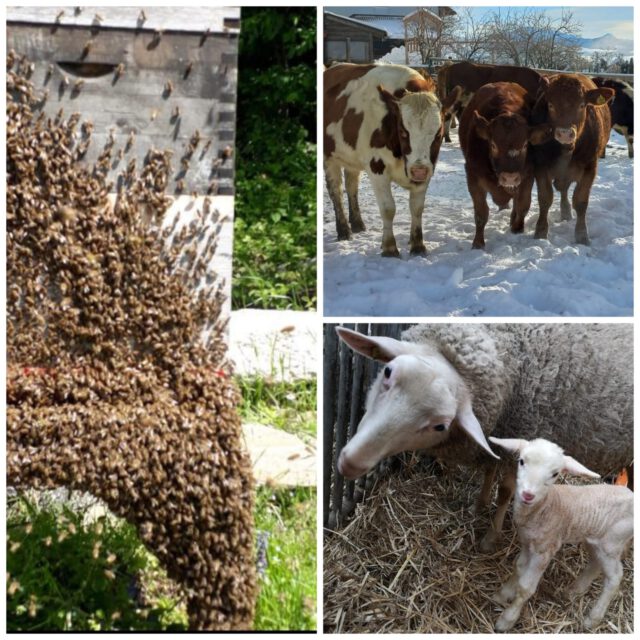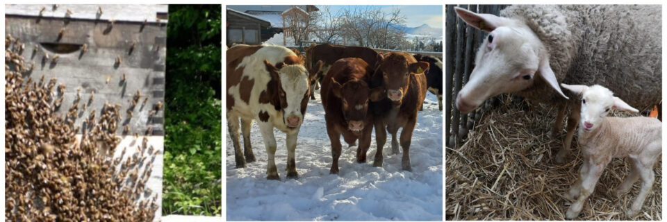 Der Betrieb besteht aus Mutterkuhhaltung, Milchschafen und Bienenstöcken.