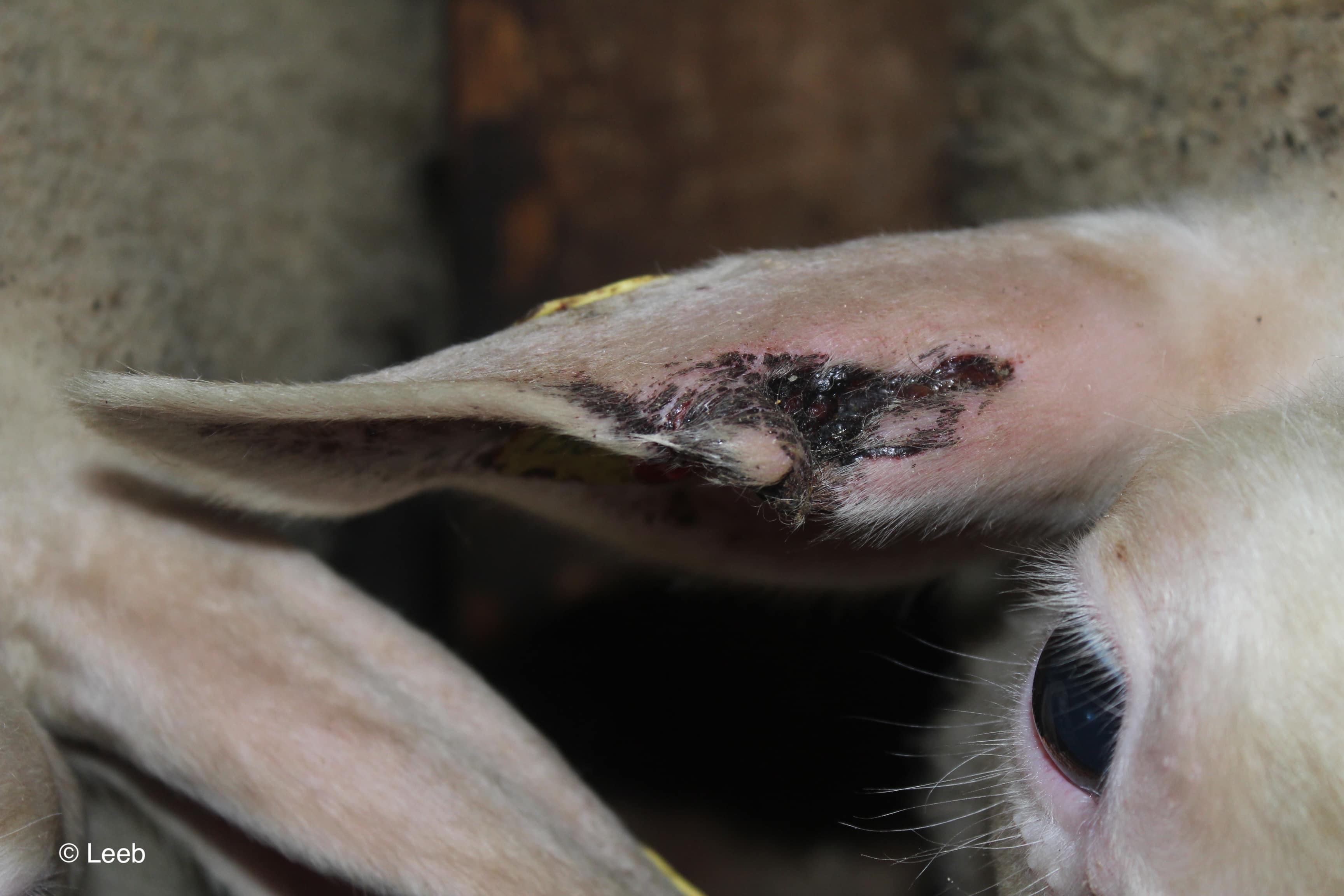 Weist das abgebildete Tier Hautparasiten, Verletzungen, haarlose Stellen oder Lippengrind auf?