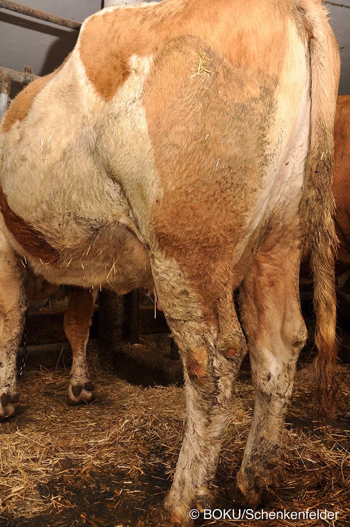 Weist das abgebildete Tier eine haarlose Stelle auf?