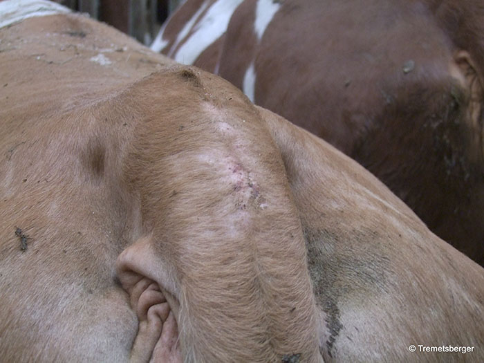 Weist das abgebildete Tier einen Hautpilz oder einen Hautparasit auf?