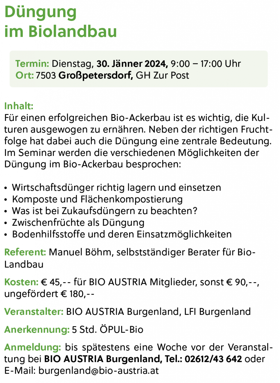 Düngung im Biolandbau – B-K-001/24