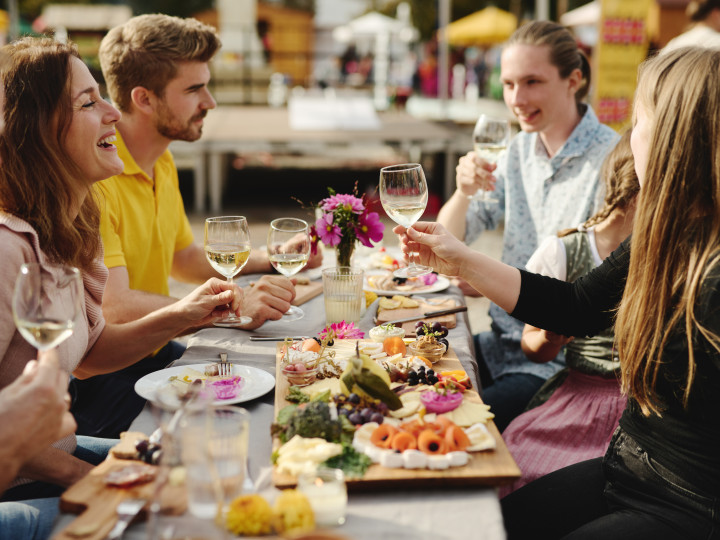 50 Gäste genießen ein Menü aus biologischen, saisonalen Delikatessen – begleitet von steirischen Weinen, gewürzt mit lebendigen Geschichten von Bauern aus der Umgebung.